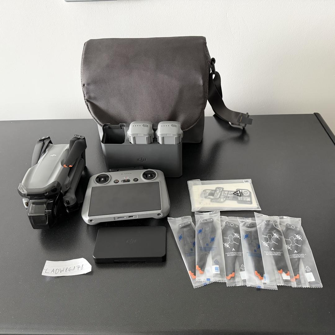 DJI Air 3S Fly More Combo with DJI RC2 in mint condition - barely used and contains all the original accessories. Includes: DJI Air 3S aircraft, DJI Air 3S shoulder bag, 3x DJI Air 3S intelligent flight batteries w/ Air 3S Charging Hub, DJI Air 3S ND Filters, 6 Spare Air 3S Propellers, USB C-C Charge Cable, DJI RC2 and manuals. The batteries have few charge cycles on them. Aircraft will be unbound from my account prior to the sale to allow the buyer to activate the drone. RC2 remote also has a matte screen protector applied.