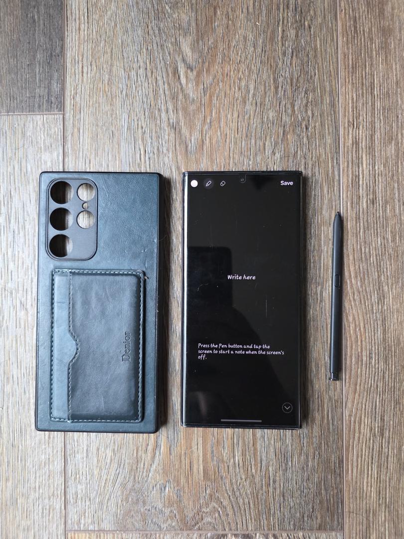 Unlocked Like New Samsung Ultra S22 Dual-SIM Phone with Leather Kickstand Case and screen protector