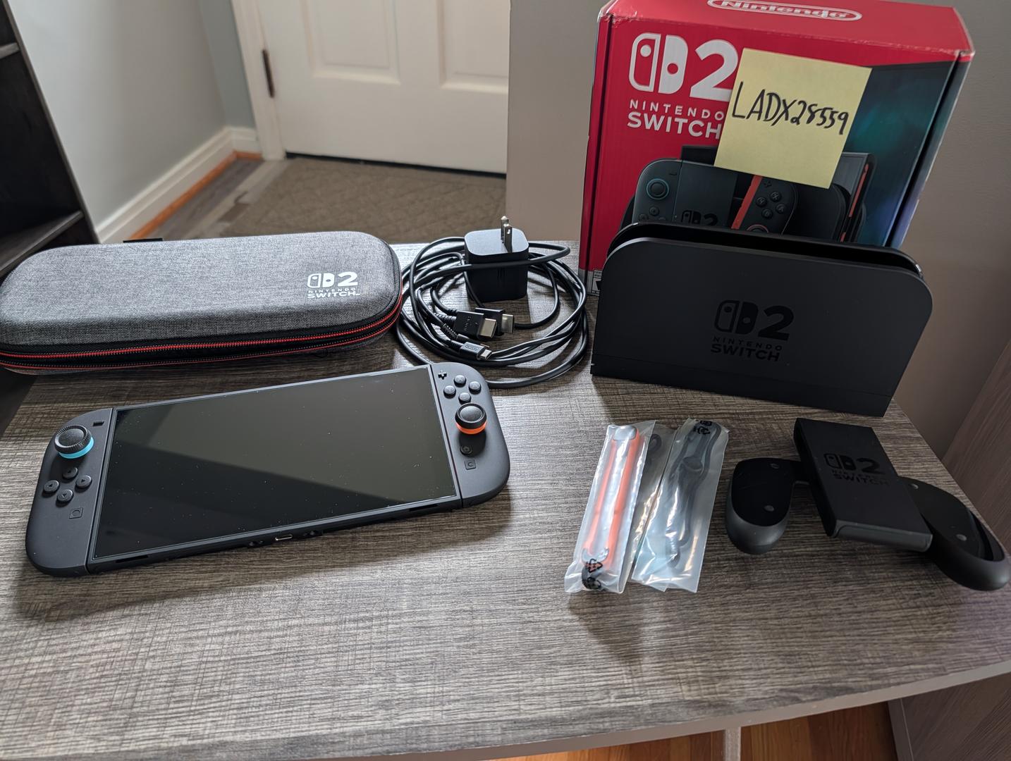 Switch 2 comes with a dbrand glass screen protector installed, thumb stick grips installed as well as a travel case.