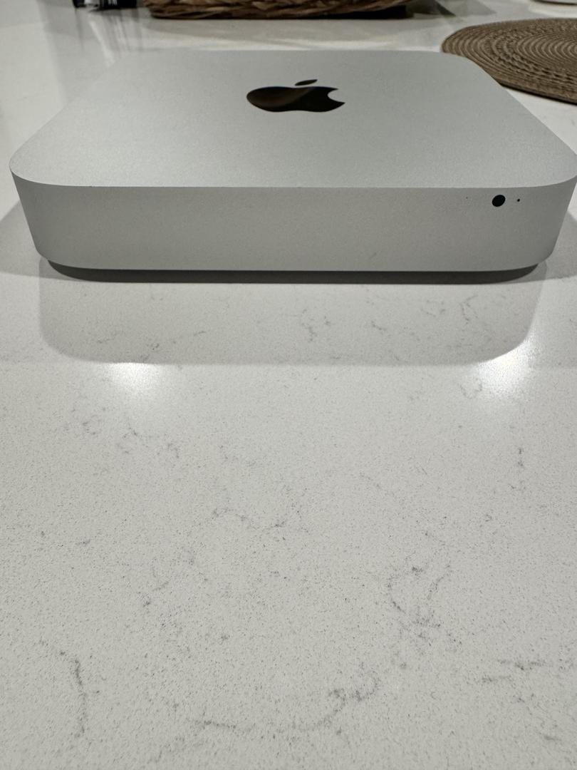 Apple Mac Mini (late 2014) unit. In good working condition with normal cosmetic wear (light scuffs/scratches), nothing affecting performance.