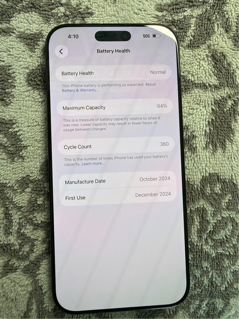 Battery health is at 94% maximum capacity, providing reliable daily performance.