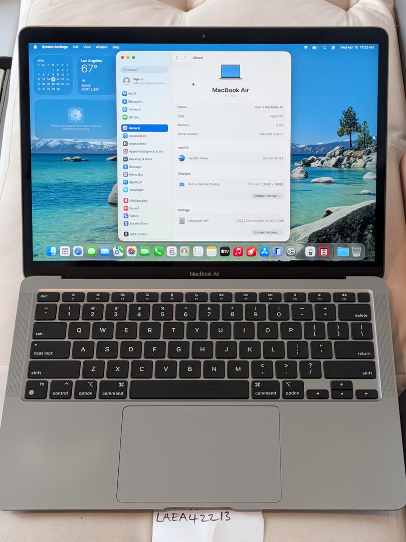 Apple MacBook Air 13 2020 M1 8-Core CPU 7-Core GPU 8GB RAM 256GB Storage Space Gray - 100% Battery
