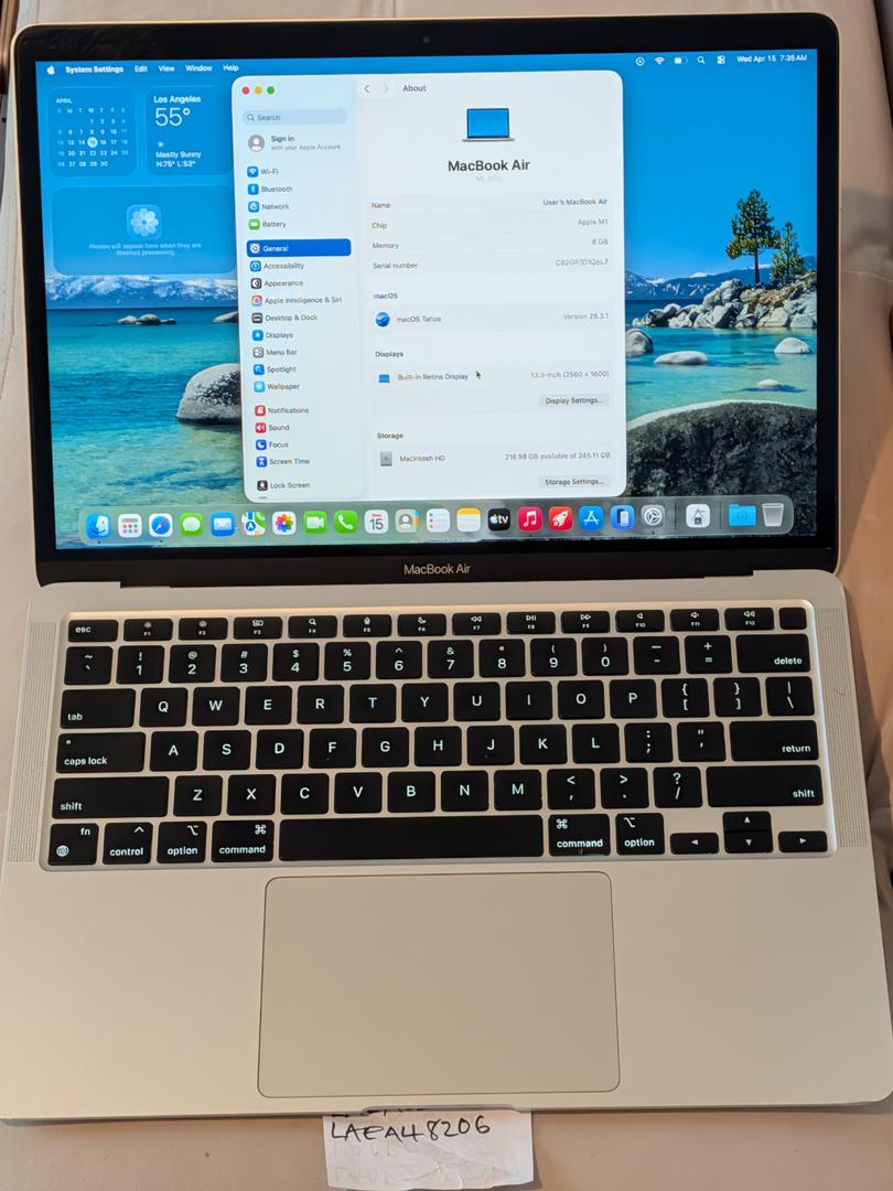 Apple MacBook Air 13 2020 M1 8-Core CPU 7-Core GPU 8GB RAM 256GB Storage Silver