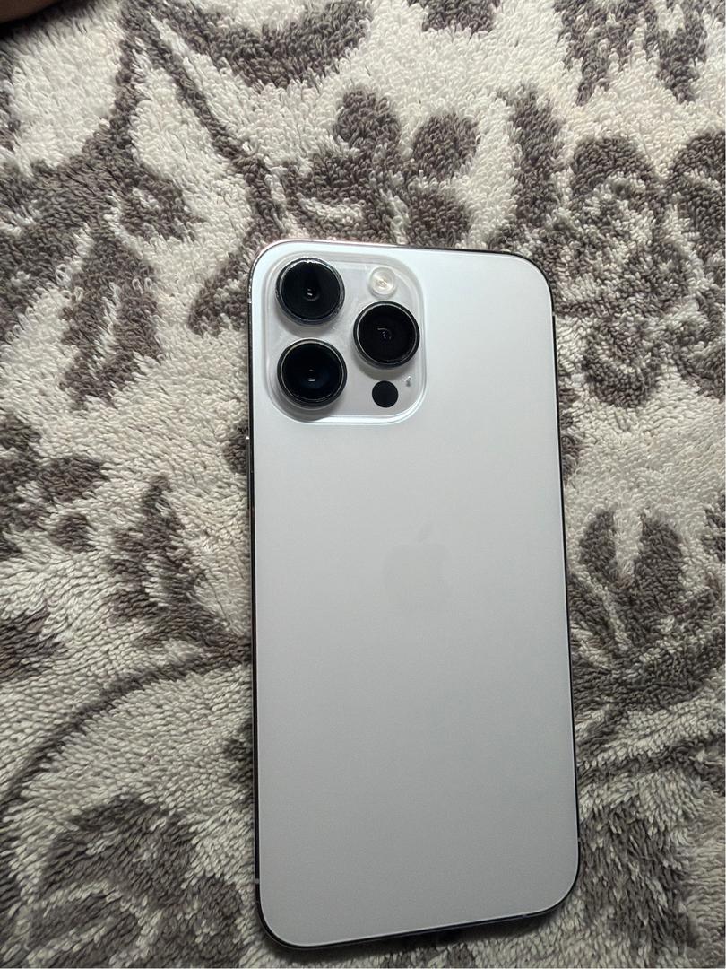 Up for sale is an Apple iPhone 14 Pro Max with 128GB of storage in a sleek Silver finish. The device is fully unlocked and compatible with any carrier.