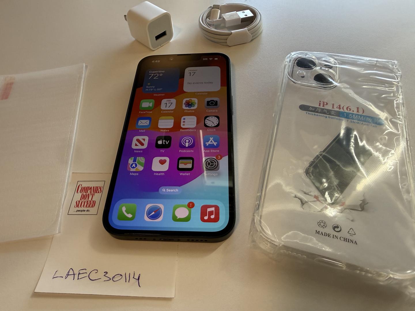 Please note: this iPhone 14 does not come with its box and accessories. It comes with a complimentary new usb cable, new changer, new tampered screen protector, and a new clear case. Please see images for details.
