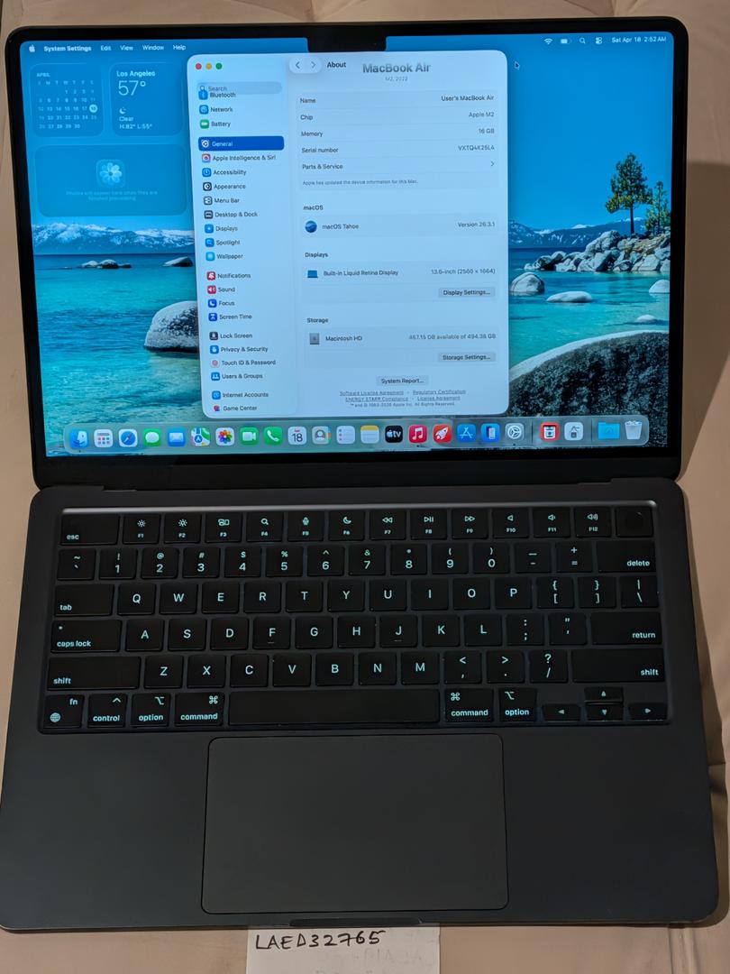 Apple Macbook Air M2 2022 13" 8-Core CPU 10-Core GPU 16GB RAM 256GB SSD - Midnight - 100% Battery Ca