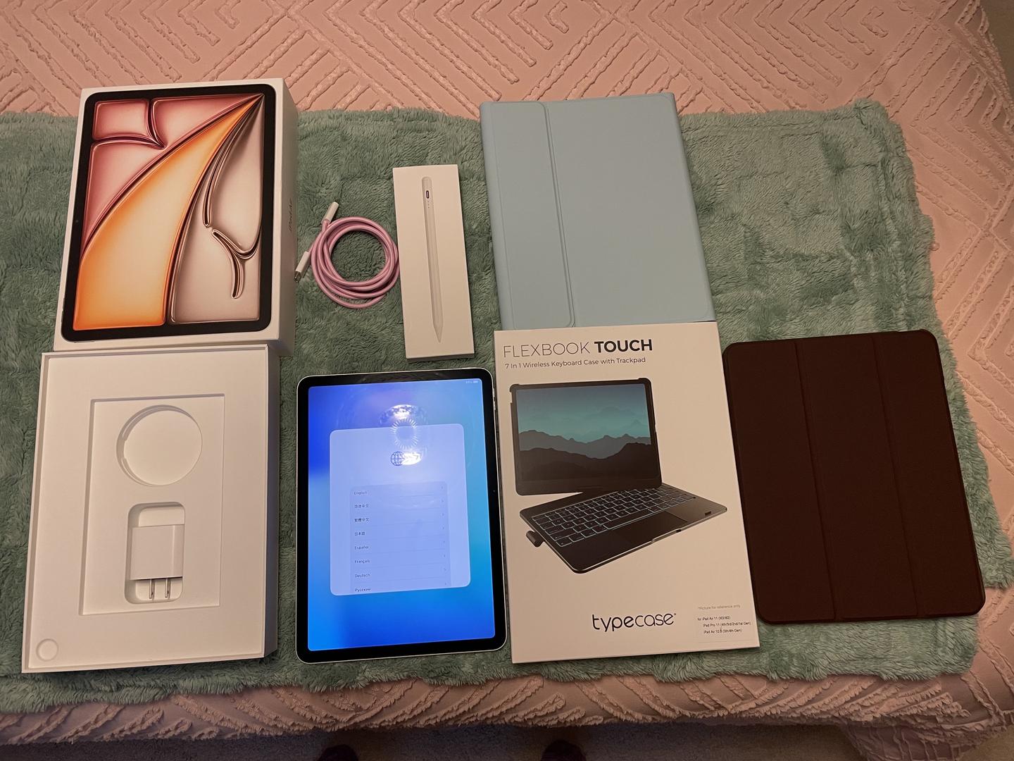This is an 11' M3 Wifi Ipad Air. The storage is only 128GB but I never got it over half full during my year of using it. It's great for entertainment and comes with the accessories I have for it (pictured). There are two keyboard/cases; a pencil (not the Apple pencil) but works well with the tablet. The original box, paperwork and charging brick is included. I don't have the original charge cable thanks to my vacuum eating it. There is a longer, braided Belkin USB-C to C connector included that works great. The tablet is in excellent condition (see pics). I've always had it protected and can't find any scratches/scuffs on it. Please ask if any questions.