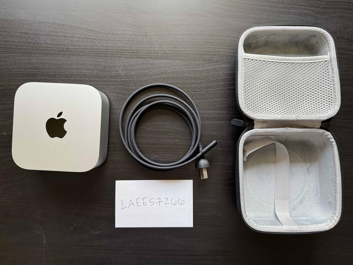 I'm selling my mint condition Mac mini. I bought this in April 2024 but I got a laptop shortly after so it's been very lightly used, mainly sitting on the desk in a smoke free home. I don't have the original box but I'm including a hard shell travel case. The Mac mini fits perfectly in the travel case and has a spot for the power cable too!