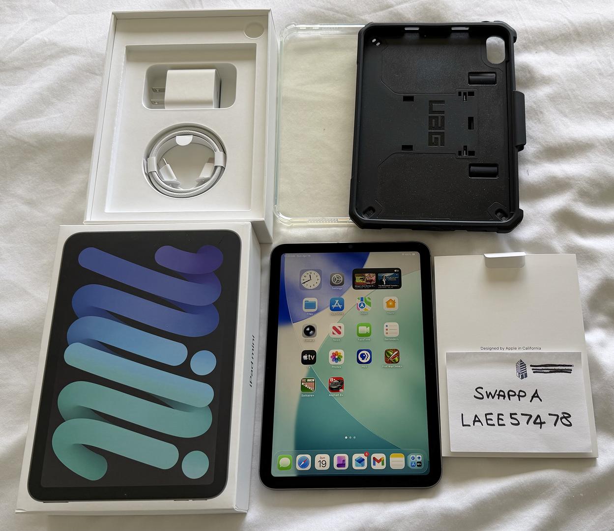 iPad Mini, Box, Unused USB-C Cable, Unused Power Adapter, Apple Limited Warranty