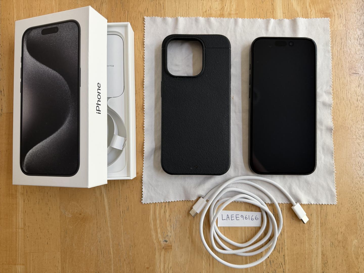 Apple iPhone 15 Pro in great cosmetic condition with very little, if any, signs of use/wear. Will ship with the original box and charging cable, Caudabe Sheath black phone case, and FloLab NanoArmor 5 tempered glass screen protector installed.