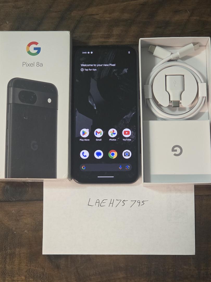 Verizon Google Pixel 8a 128gb, Obsidian in color. Back of phone has a few stuff marks under the G. Is shown in images. Never activated, ready to use on Verizon. Any other questions feel free to ask.