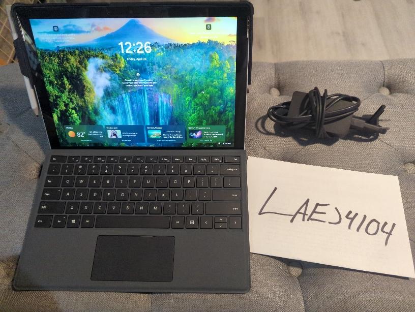 Includes charger, type keyboard, surface pen, and case all shown in the pictures.