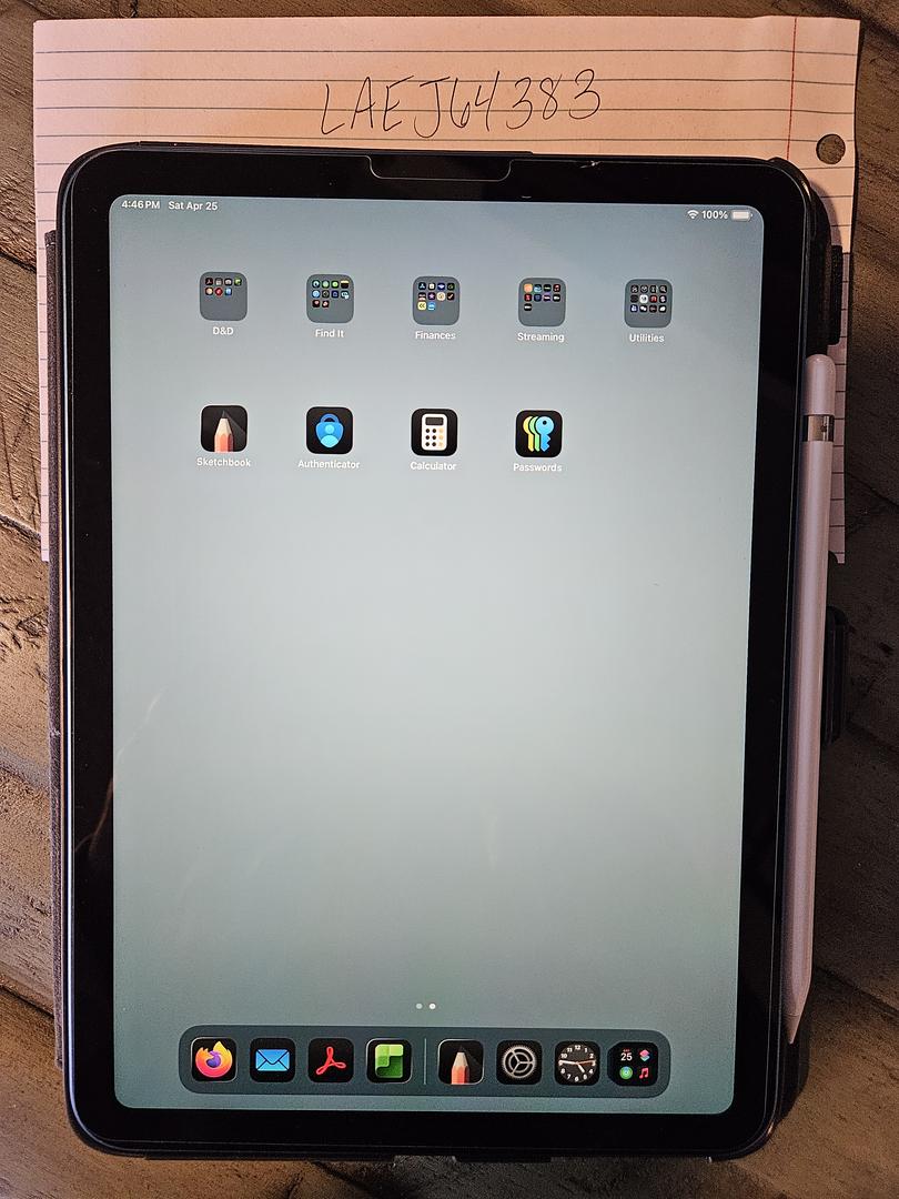 Mint condition iPAD. It went straight from the box to a speck protective cover (included). I'm including the genuine Apple (10 gen compatible) pen I have for it (this c-usb charger accessory still works fine). I used this iPAD for gaming and digital art but soon found I preferred to do things old school. It's literally been sitting on a shelf. (Next to books I've read without cracking the spines - I'm THAT guy.) This iPad is well cared for - as new as you can get for an opened product. The speck protective cover latch is broken but everything else is pristine. Extra screen protector also included.