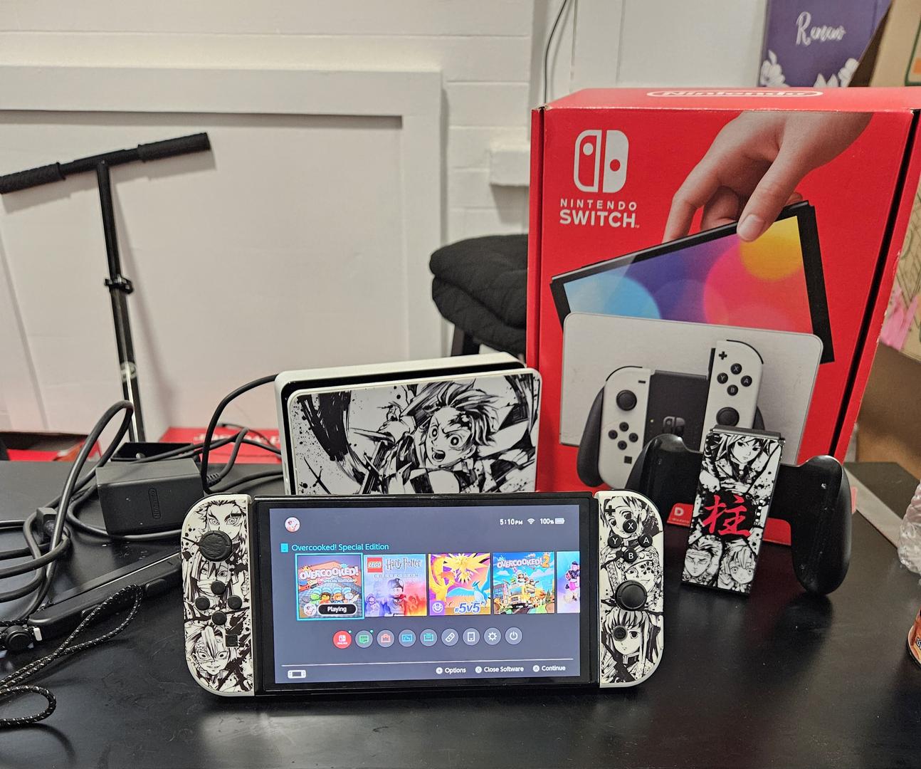 Nintendo Switch OLED White Demon Slayer Stickers w/ Seperate Case