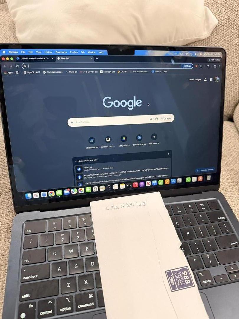 Model & specs**: MacBook Air, M2 chip, 256GB SSD, 8GB RAM