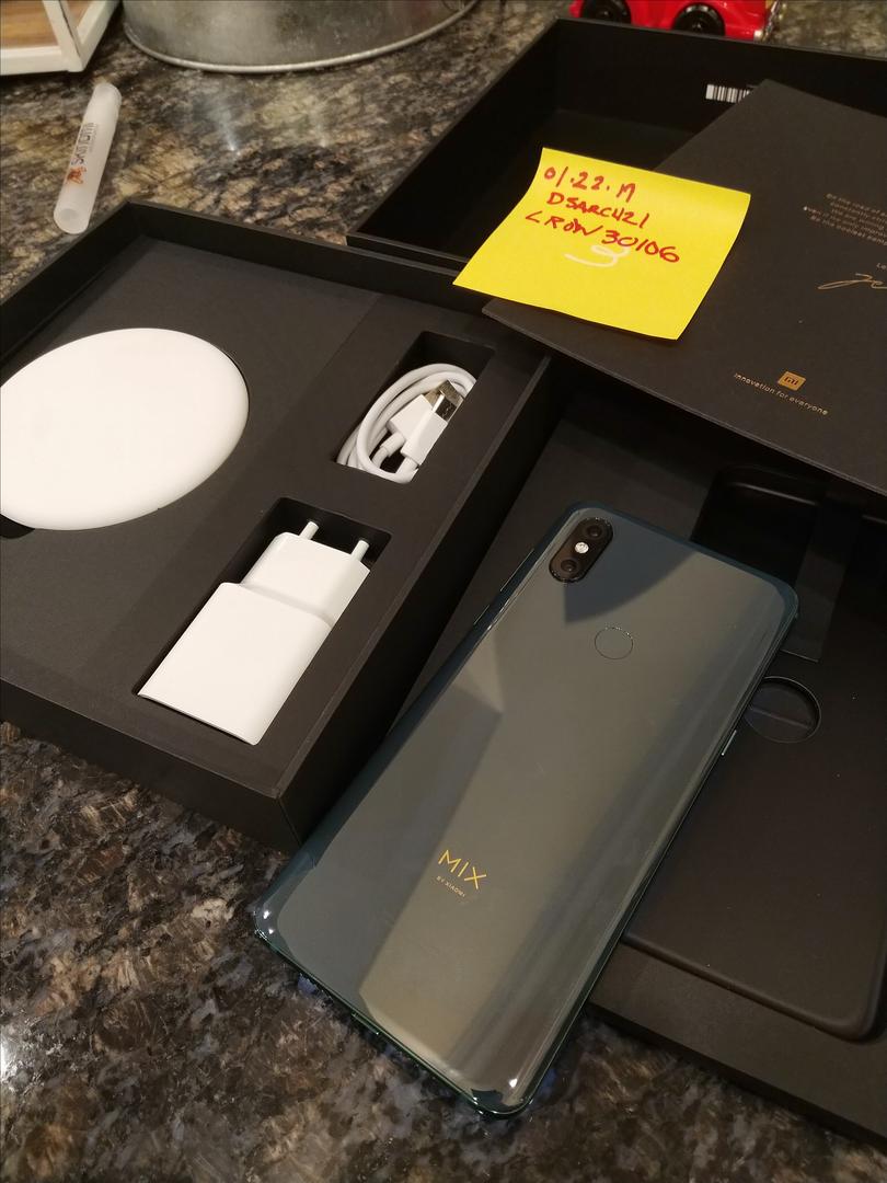 New Mi Mix 3. Took out of box , installed screen protector and played with it a little and decided it was too big for me. All original accessories and box plus USA power adapter. This is the GLOBAL edition, so it has all Google play store stuff ready to go out of the box. I used on att and worked great. Will work on on all GSM carriers. The screen protector is on in pictures, I can take off if you want but that's up to you.