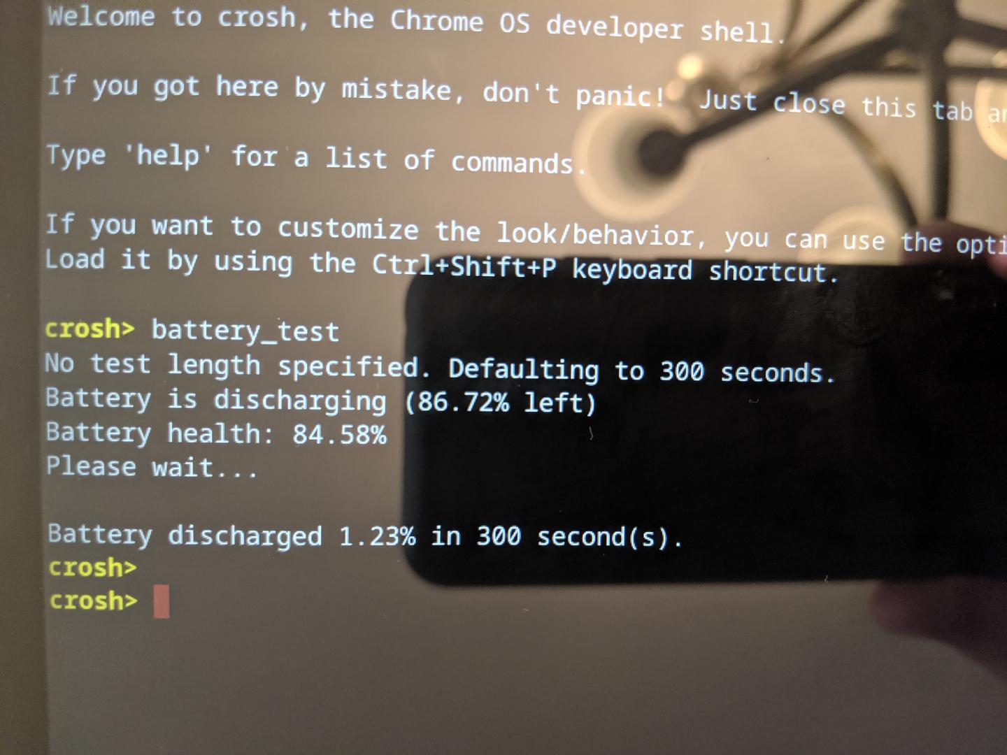 Hi there! Would it be possible for you to post a picture of the device's battery stats? ctrl + alt + t to open Crosh, and then run battery_test