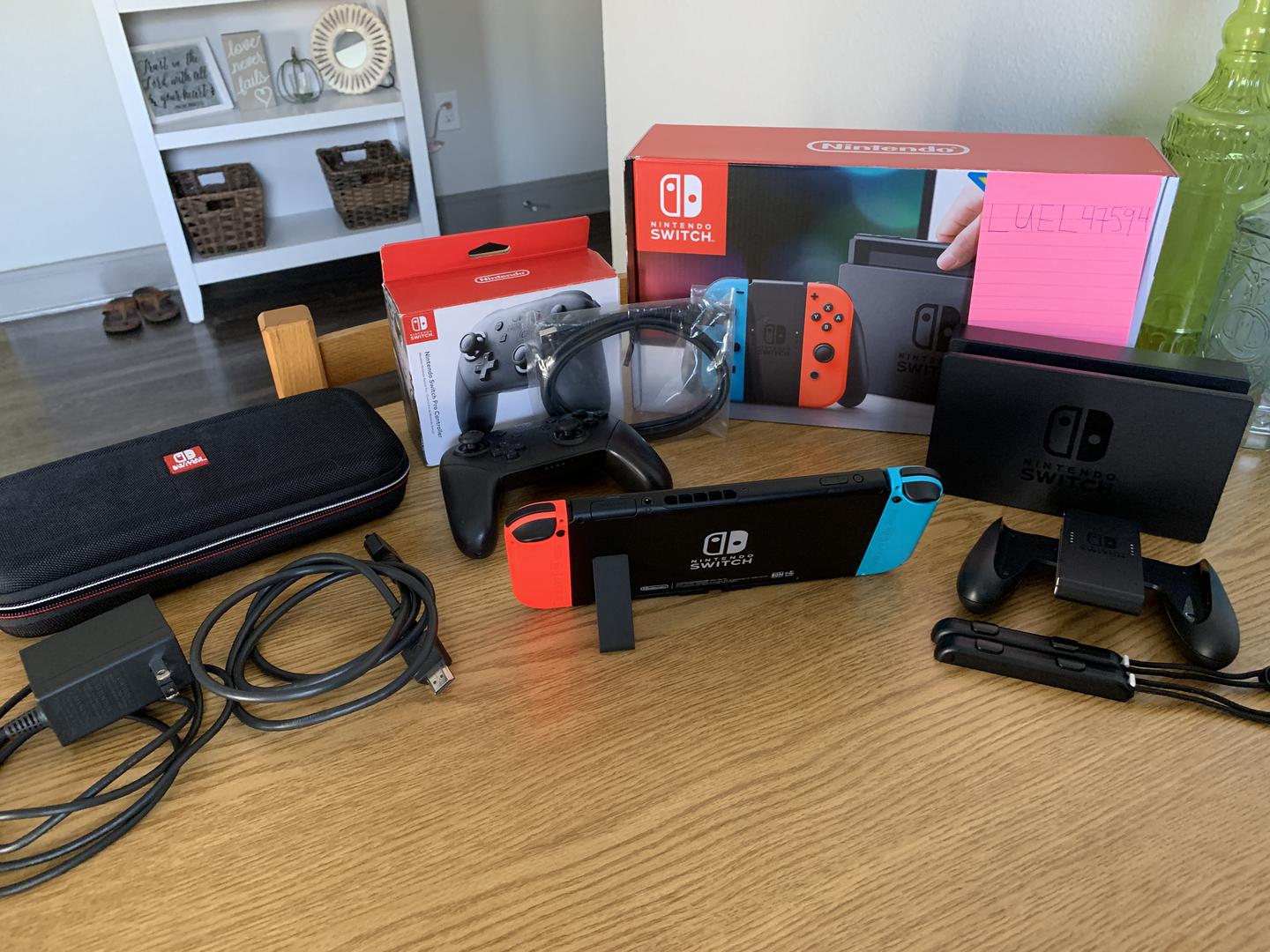 - Original accessories (Docking station, charger, Joy-Con controllers, Joy-Con straps, HDMI cable, Joy-Con grip holder, original packaging)