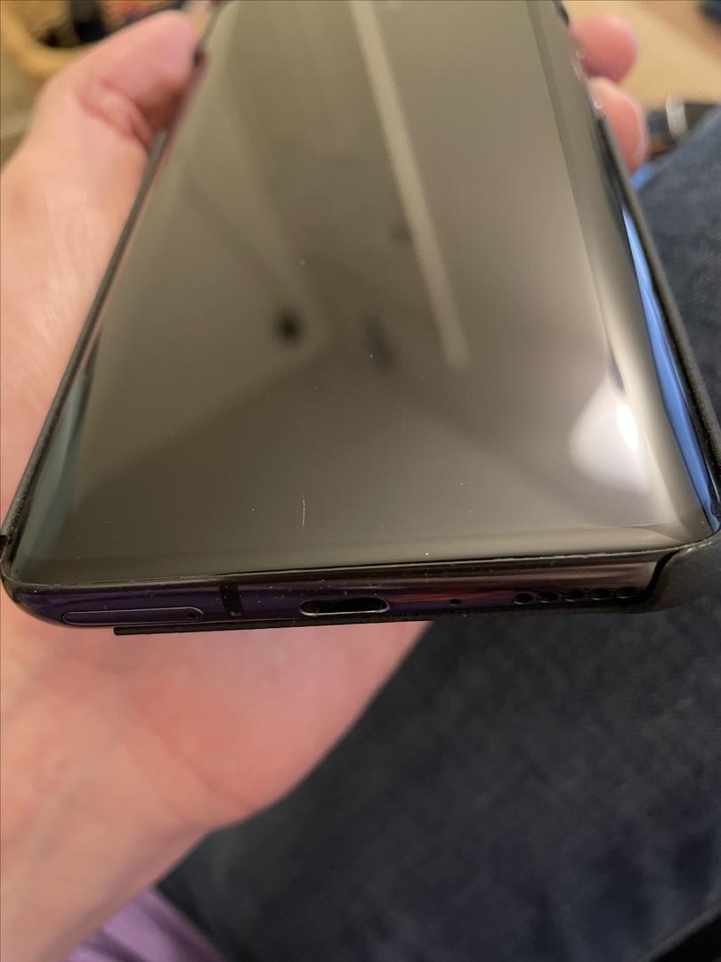 2 almost unnoticeable screen scratches towards the bottom of screen as shown as best as possible in pictures