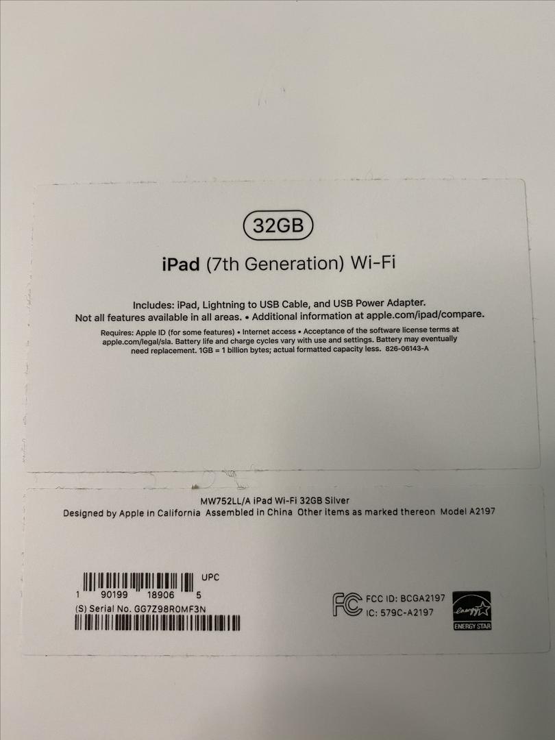 7th Gen iPad - Silver/32GB - A2197