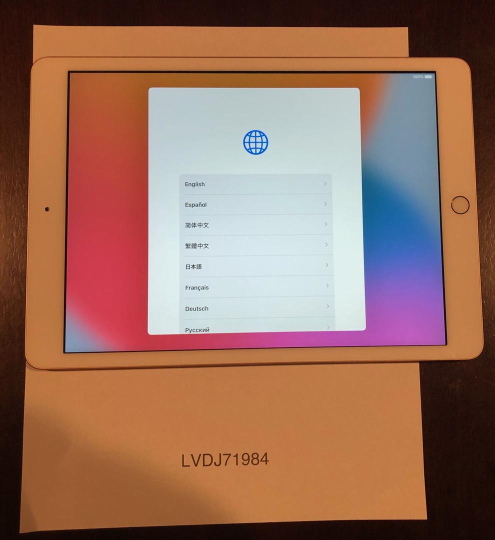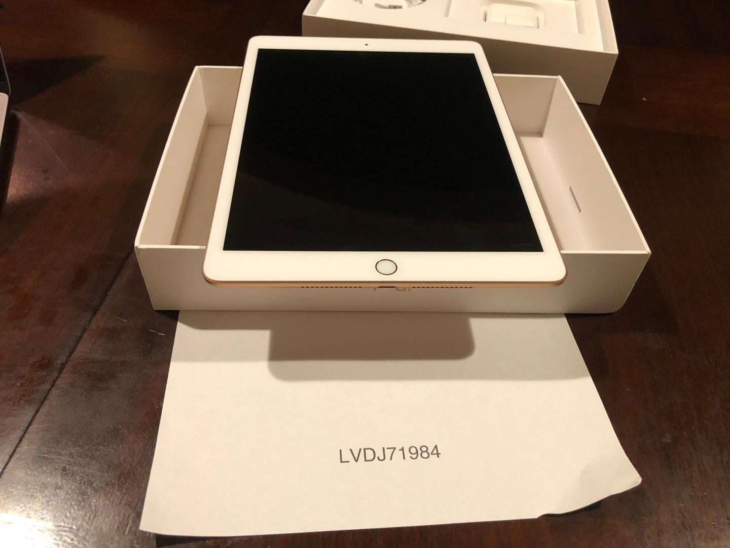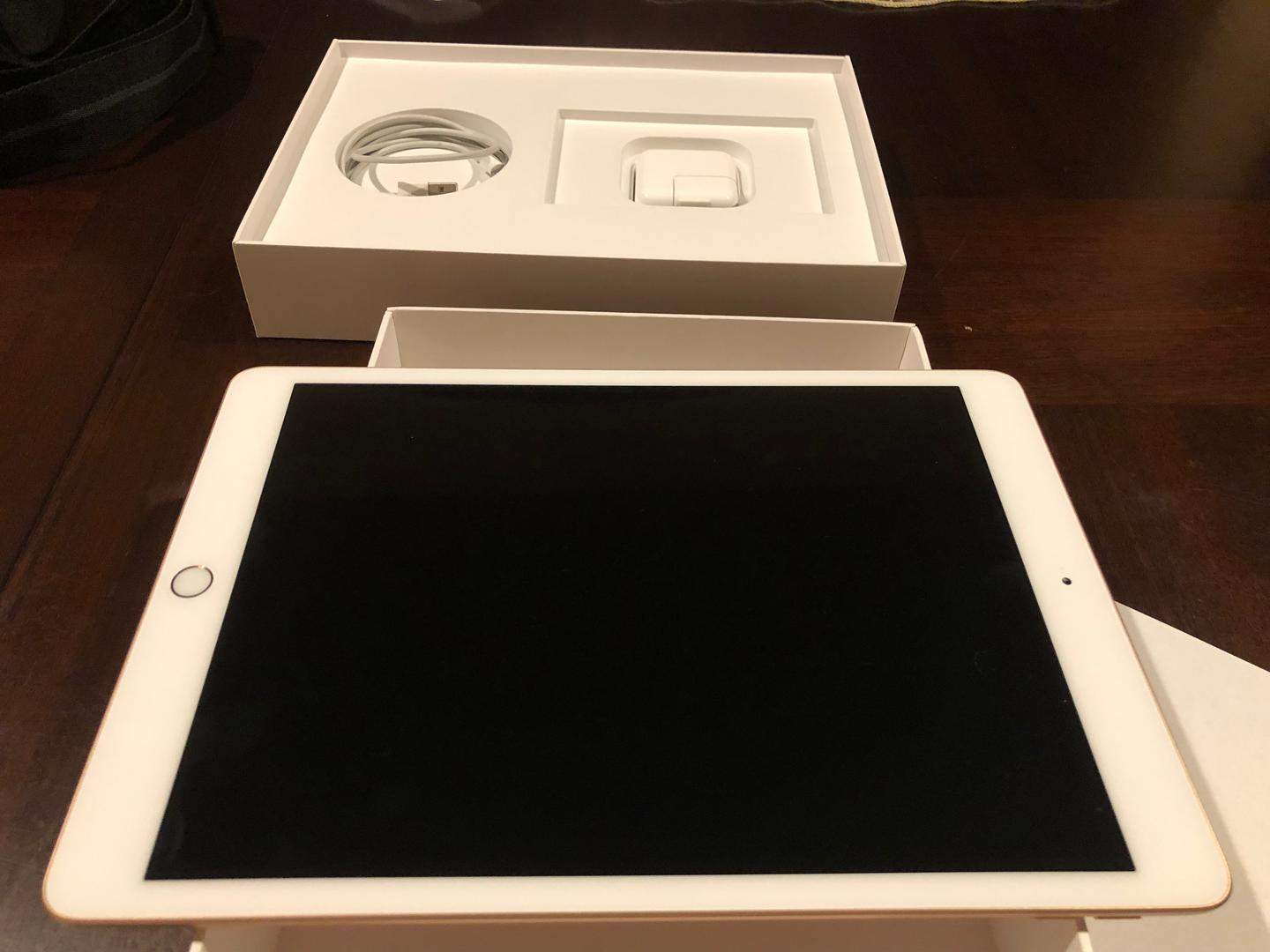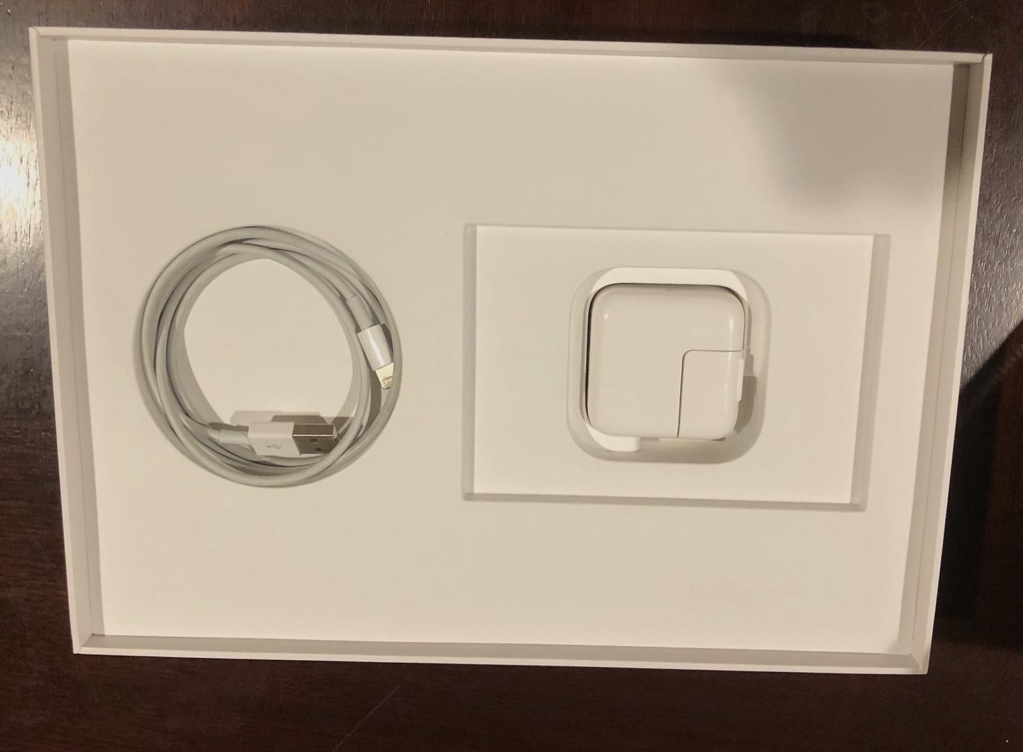 Apple iPad 7th generation - Rose - 128 GB. Includes apple cord and charger. Also includes a YEKBEE iPad case with backlit keyboard that can be recharged with provided USB cable.