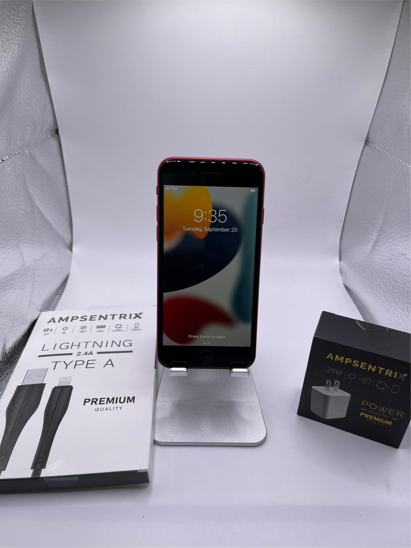 Good Condition 3rd Gen. iPhone SE Product Red. The Device is only able to work for T-mobile and no is NOT unlocked. Device comes with a 20W charger and cable. We shipping Priority Mail Shipping 2-3 business days.