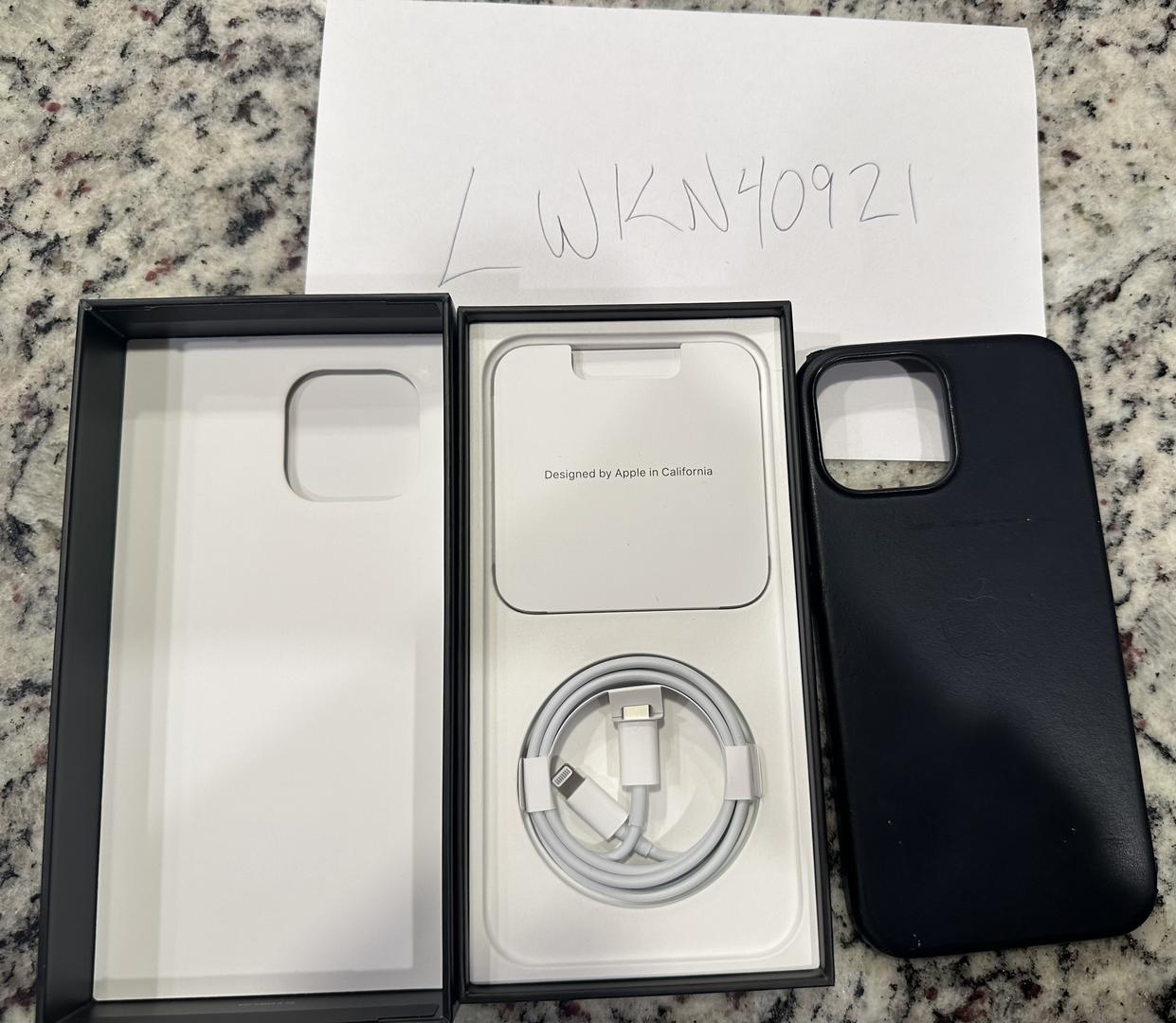 Unlocked Iphone 13 Pro Max 256Gb in Graphite, comes with Apple MagSafe Leather case.