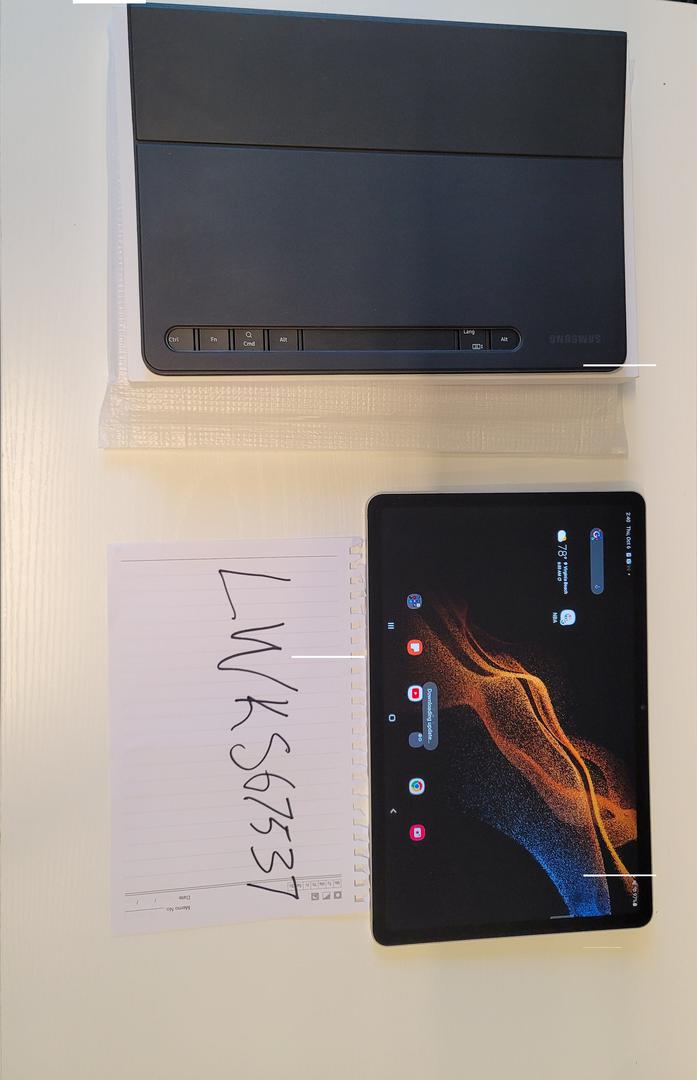 Mint condition Galaxy Tab S8, rarely used as I have an ultrabook. Includes box and Samsung S8 Book Cover Keyboard Slim.