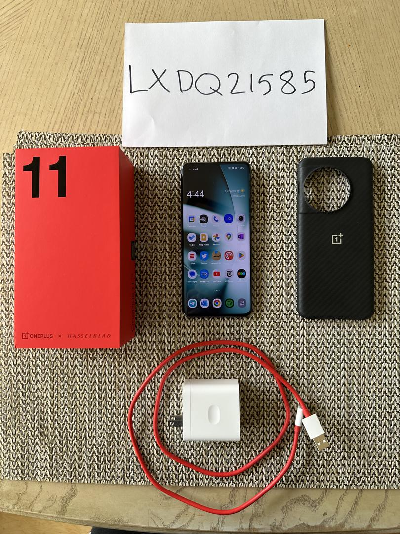 OnePlus 11 5G with the official OEM OnePlus Aramid Fiber Bumper Case. Phone is in mint condition with no scratches on the screen or body of the phone. Phone has been used in a case since I got it and still has the factory installed screen protector intact. Comes with 80W SUPERVOOC Power Adapter & USB A-C Cable.