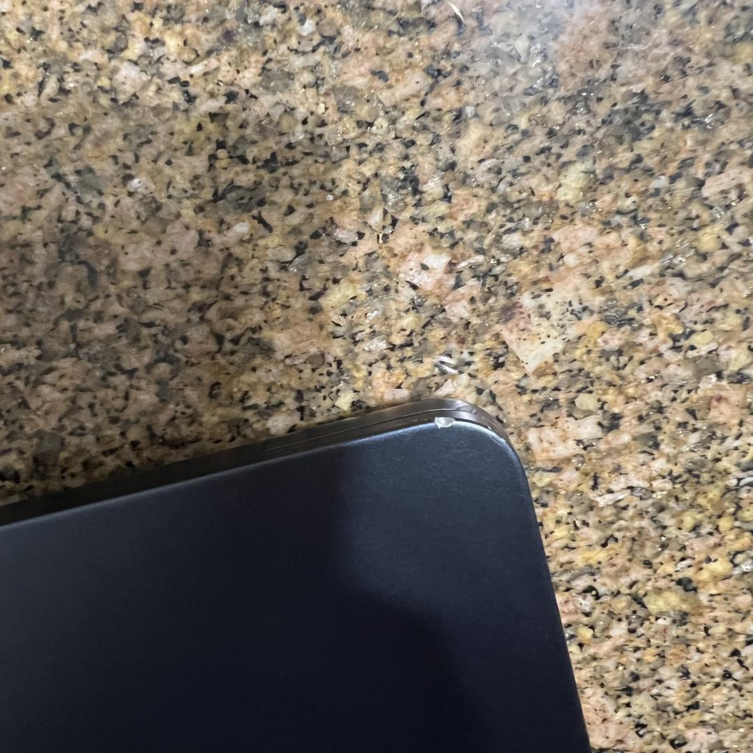 Has a chip in the back right side of the Mac as shown in the pictures.