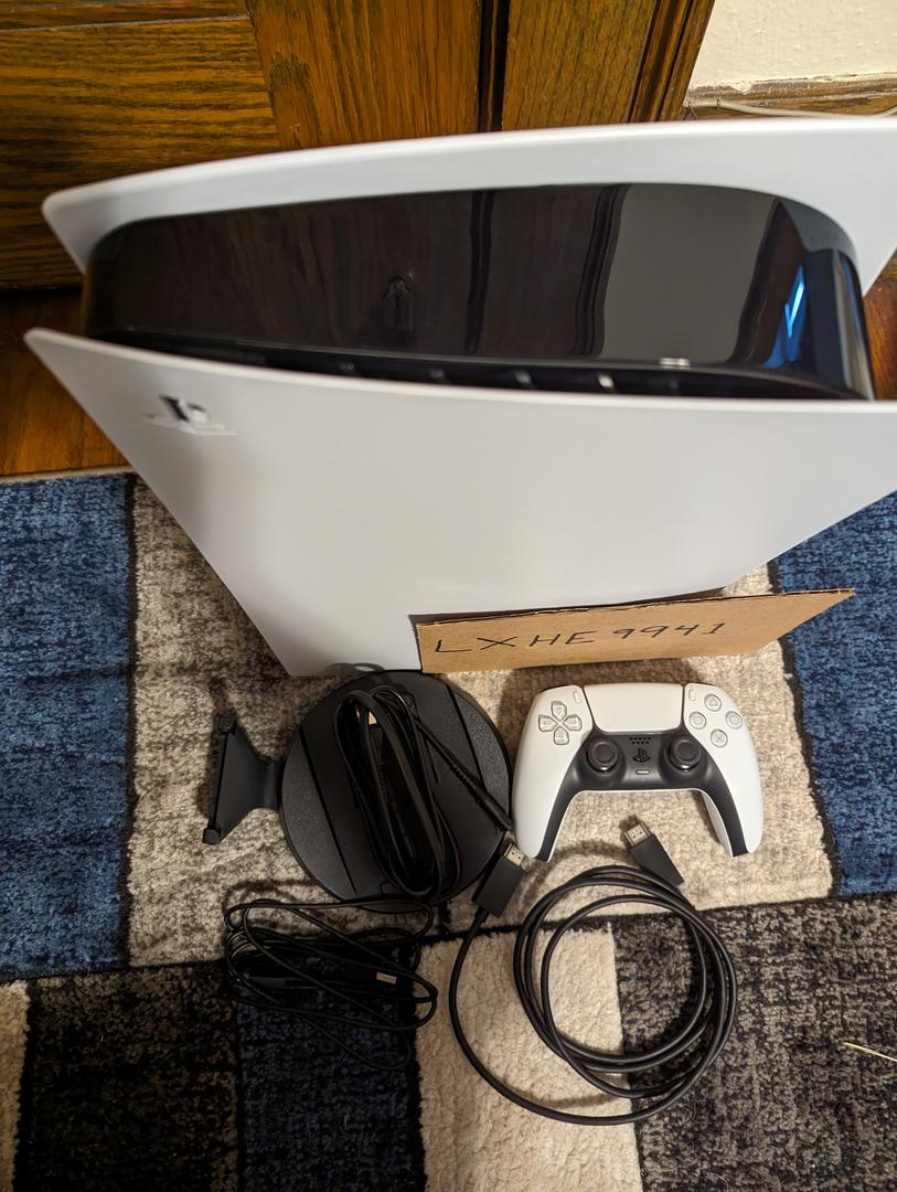 A regular PlayStation 5 with original accessories (stand, HDMI cable, controller, USB-C cable, power cable). I played it for about 30 minutes and then haven't touched it since.