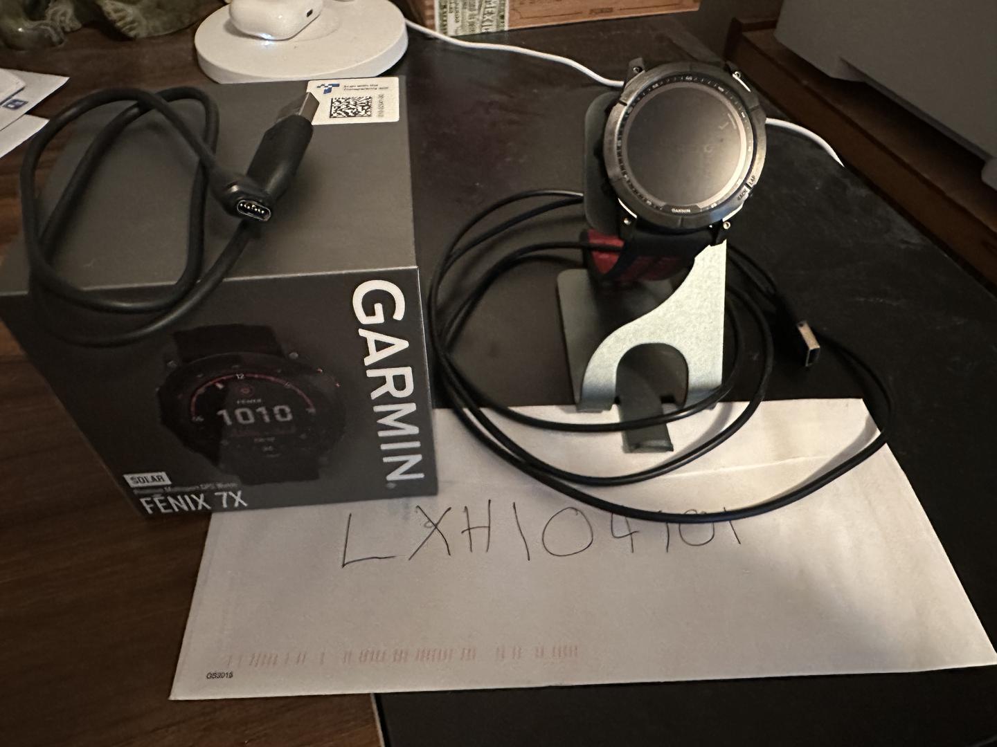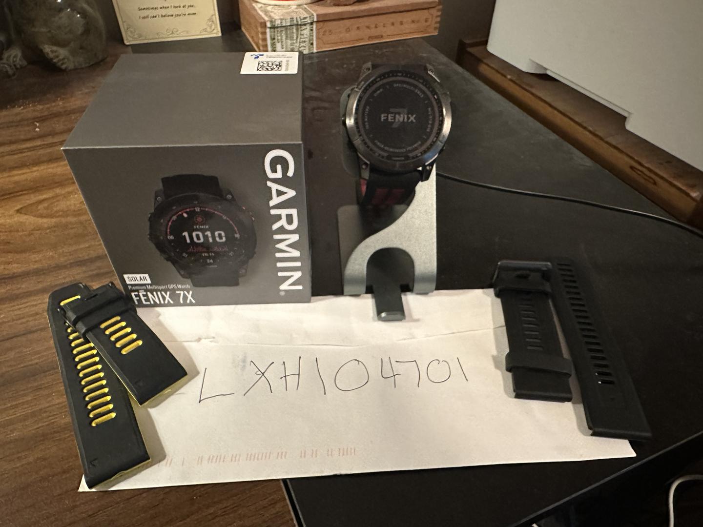 Garmin Fenix 7x solar, gently used, with extra bands and charging station.