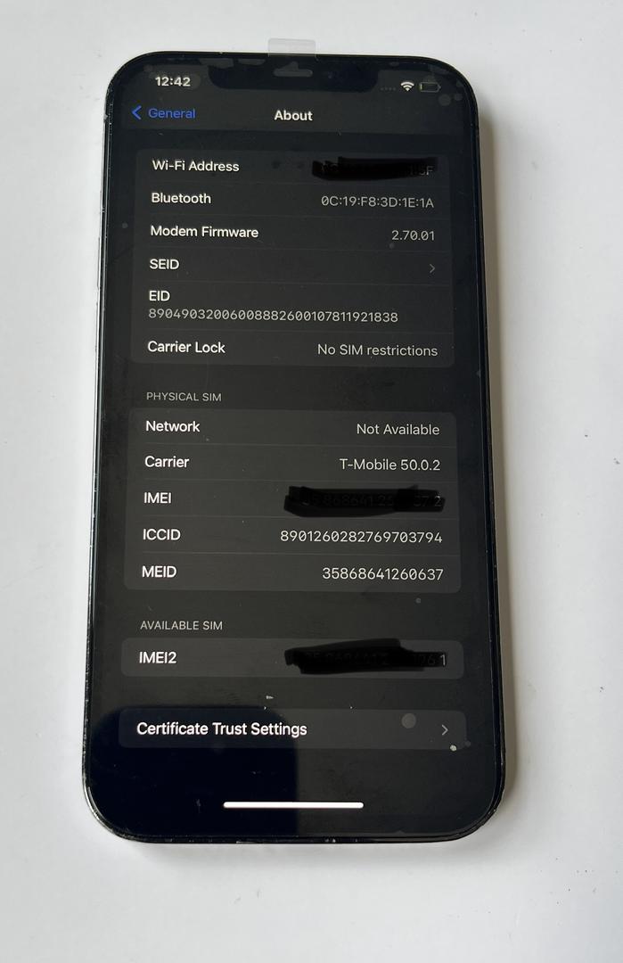 home button (if applicable), volume buttons, ring/silent button, and power button. Screen touch, Face ID, front & back cameras, charging port, GPS functionalities, wireless charging, all speakers, and SIM Card/cellular functionality undergo testing before listing***
