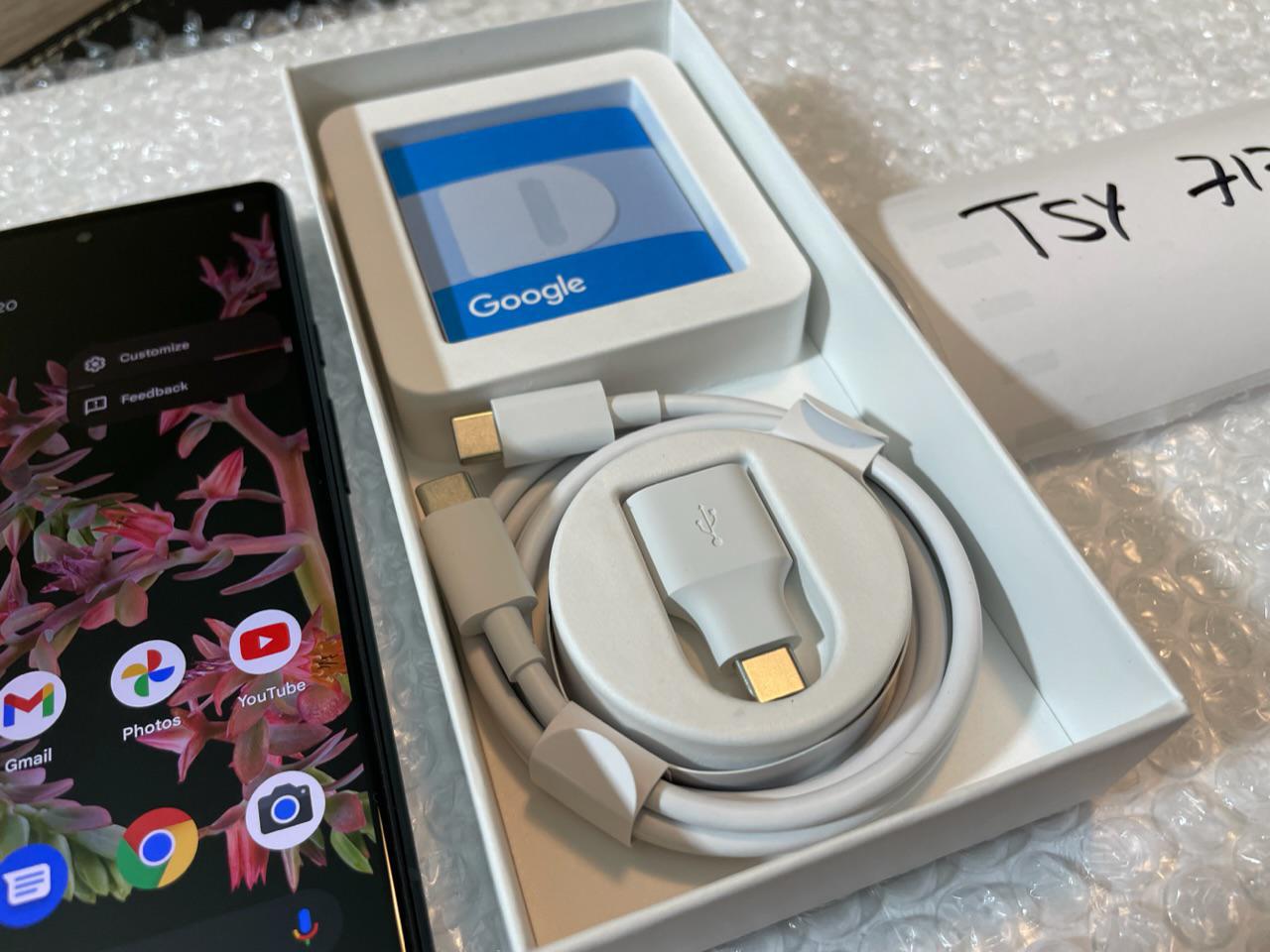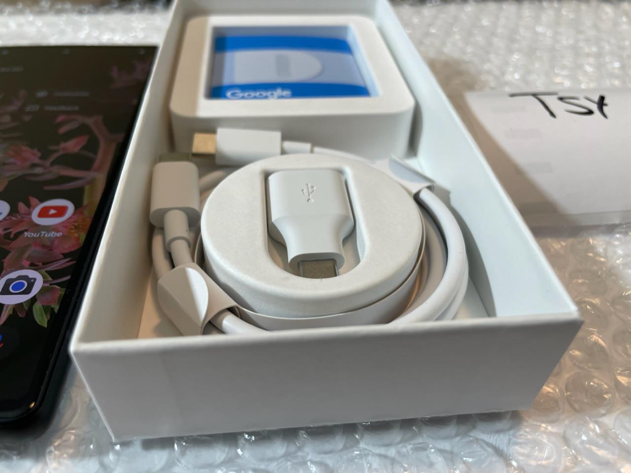 It comes with a box and a brand-new USB-C cable.