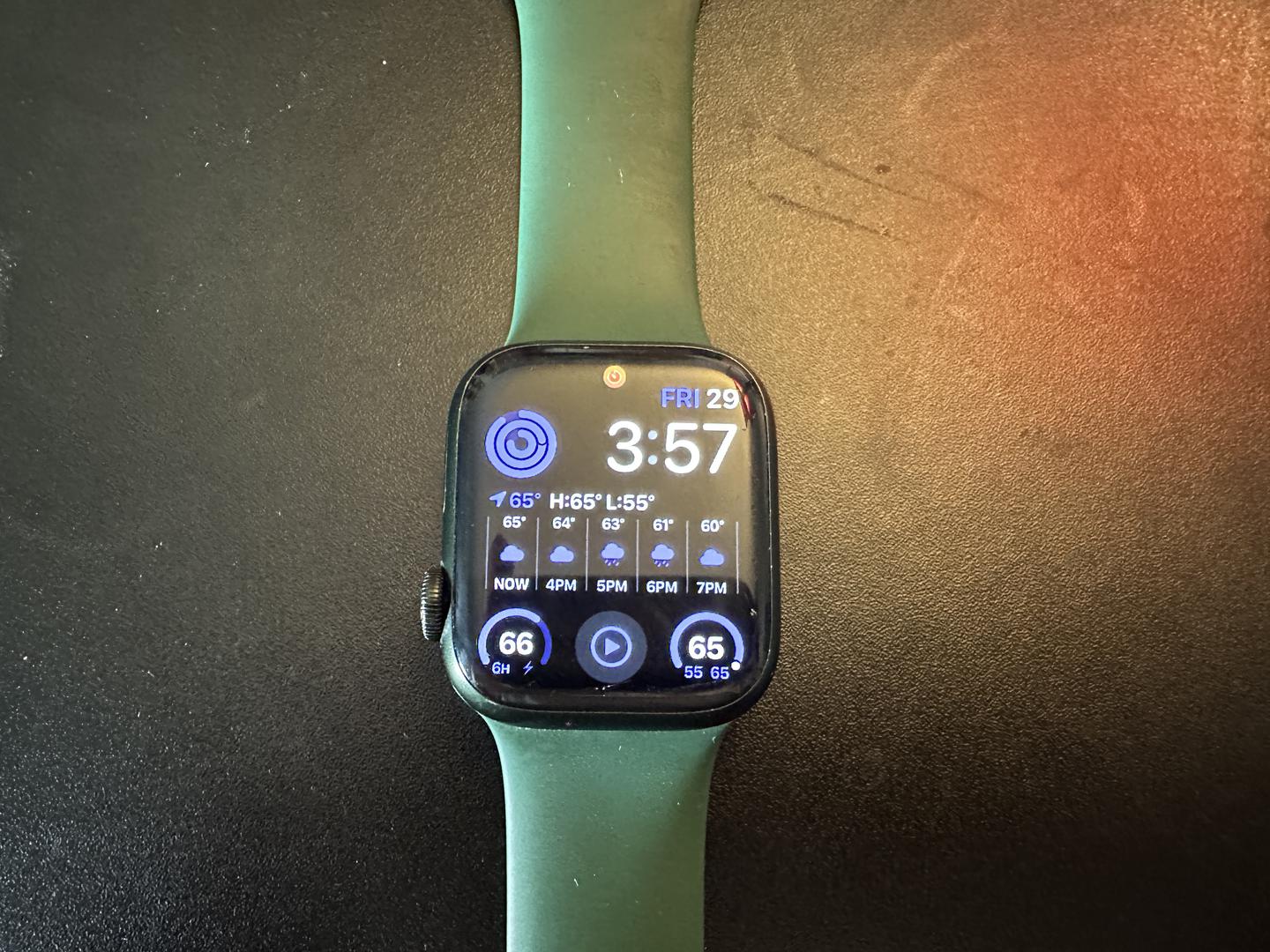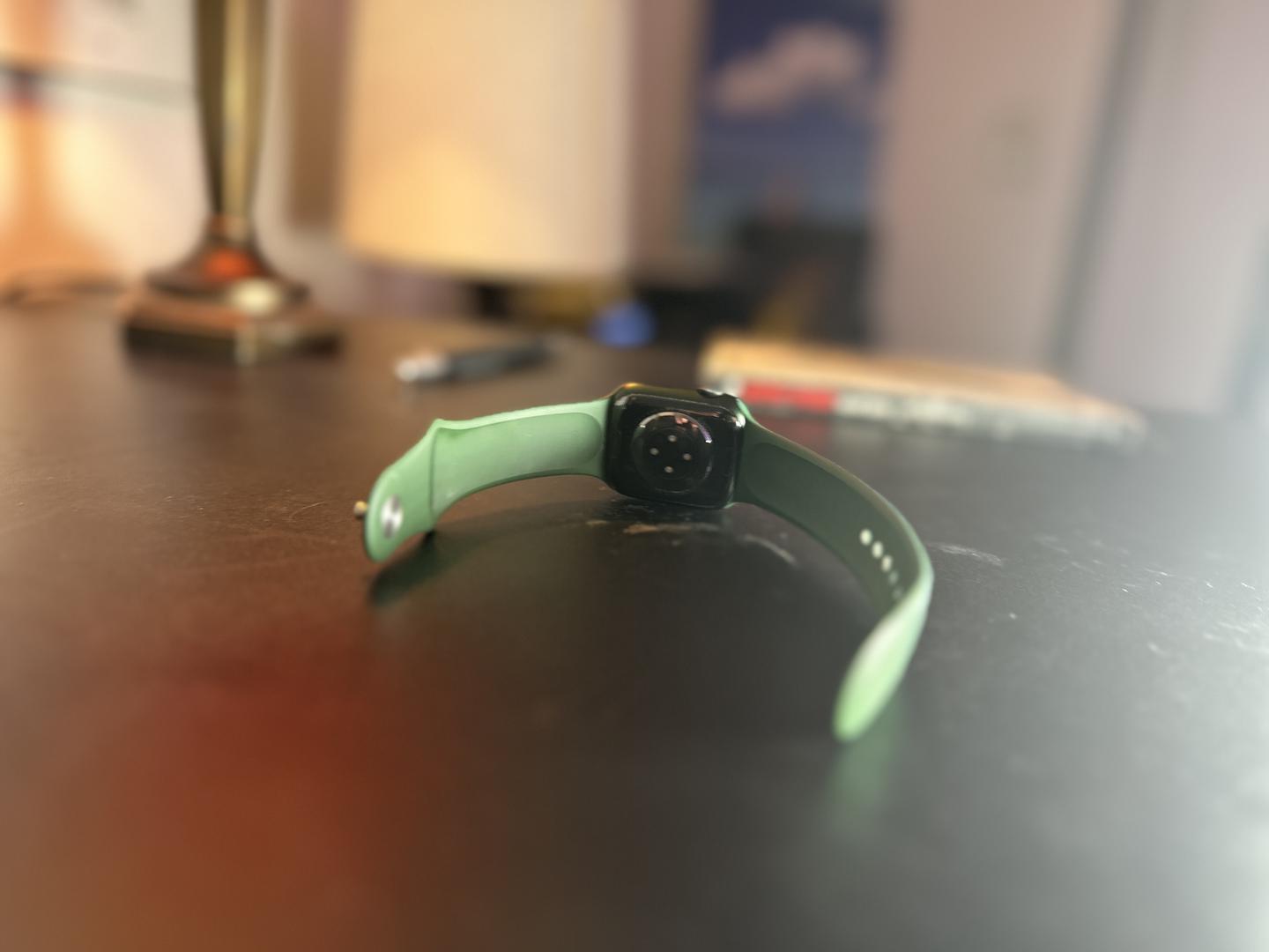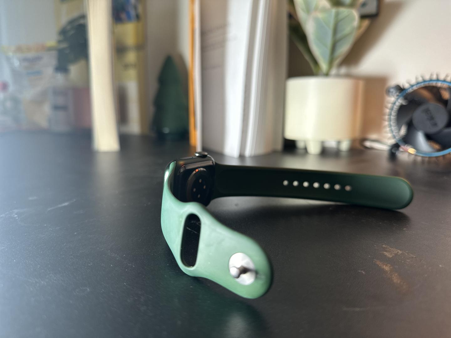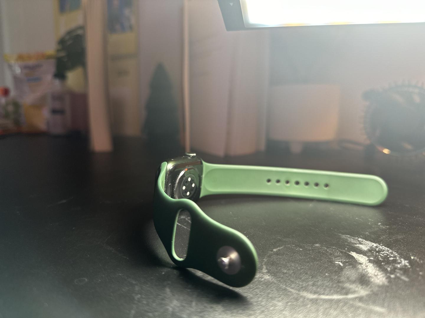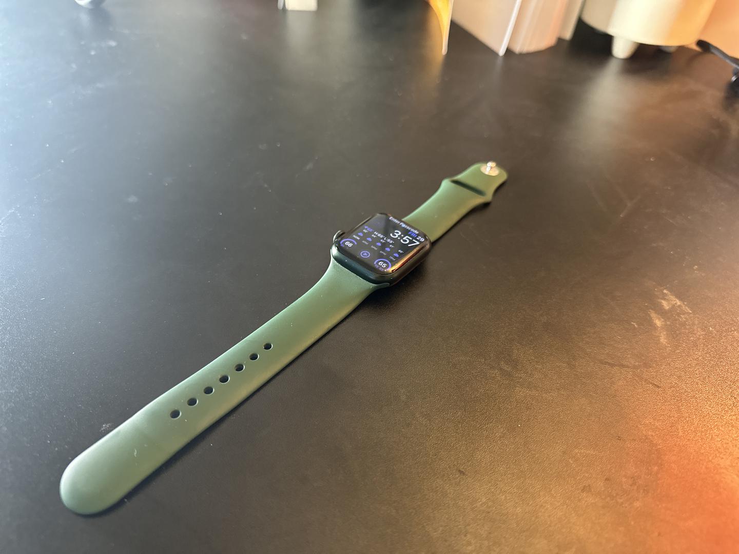 This Apple Watch Series 7 smartwatch is in amazing, like-new condition. Comes with the awesome standard Clover green sport band and charging cord!