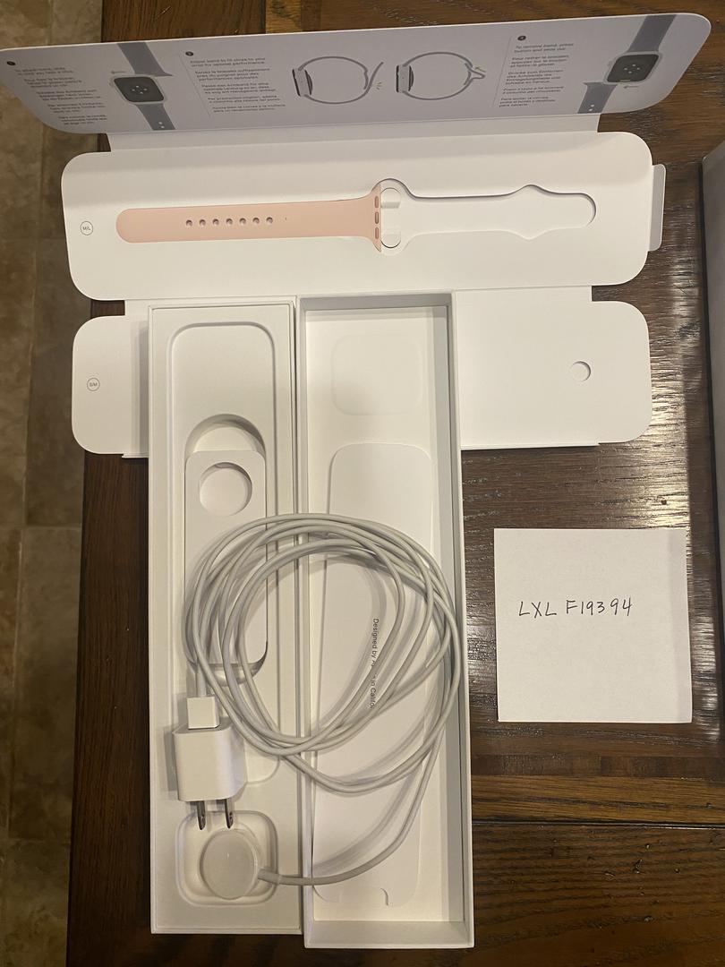 APPLE WATCH SERIES 6 GOLD ALUMINUM 40 MM PINK SAND SPORTS BAND GPS INC ORIG BOX, CHARGER & ADAPTER
