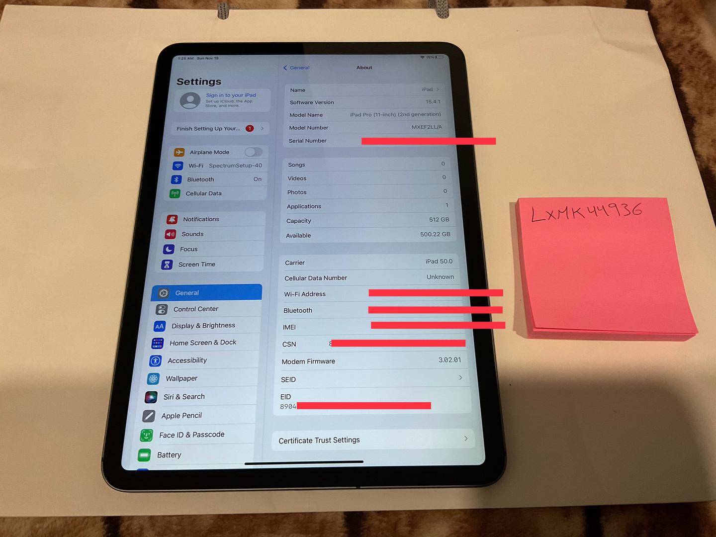 1x iPad Pro 11' 512GB Unlocked