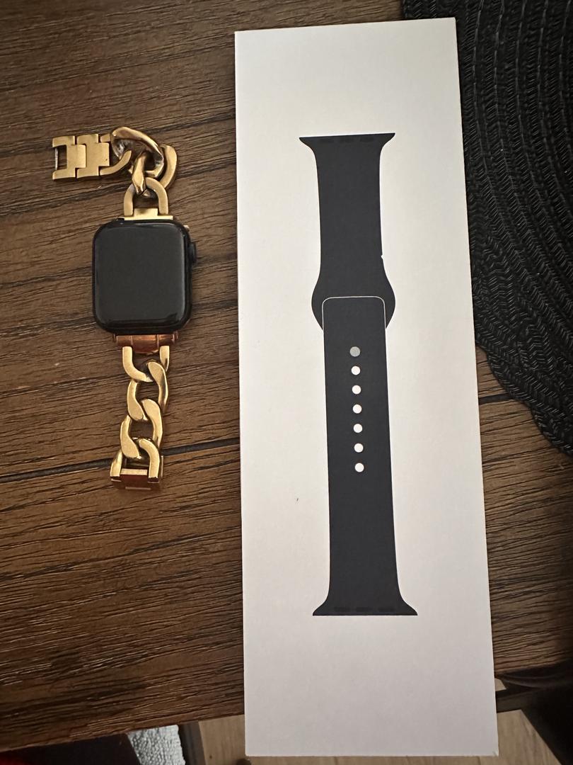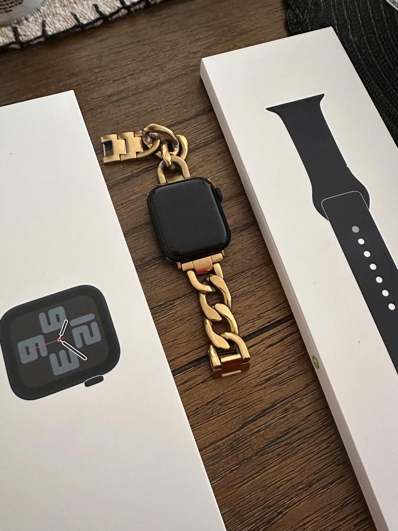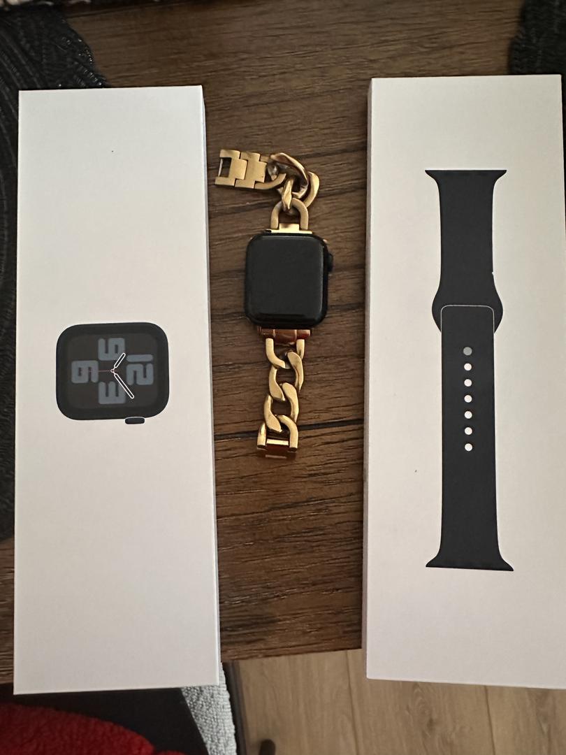 Almost new SE Gen 2 40mm in midnight color. Comes with never worn sport band in midnight. Bought 2 months ago and in perfect working condition. Will include gold chain watch band for free.