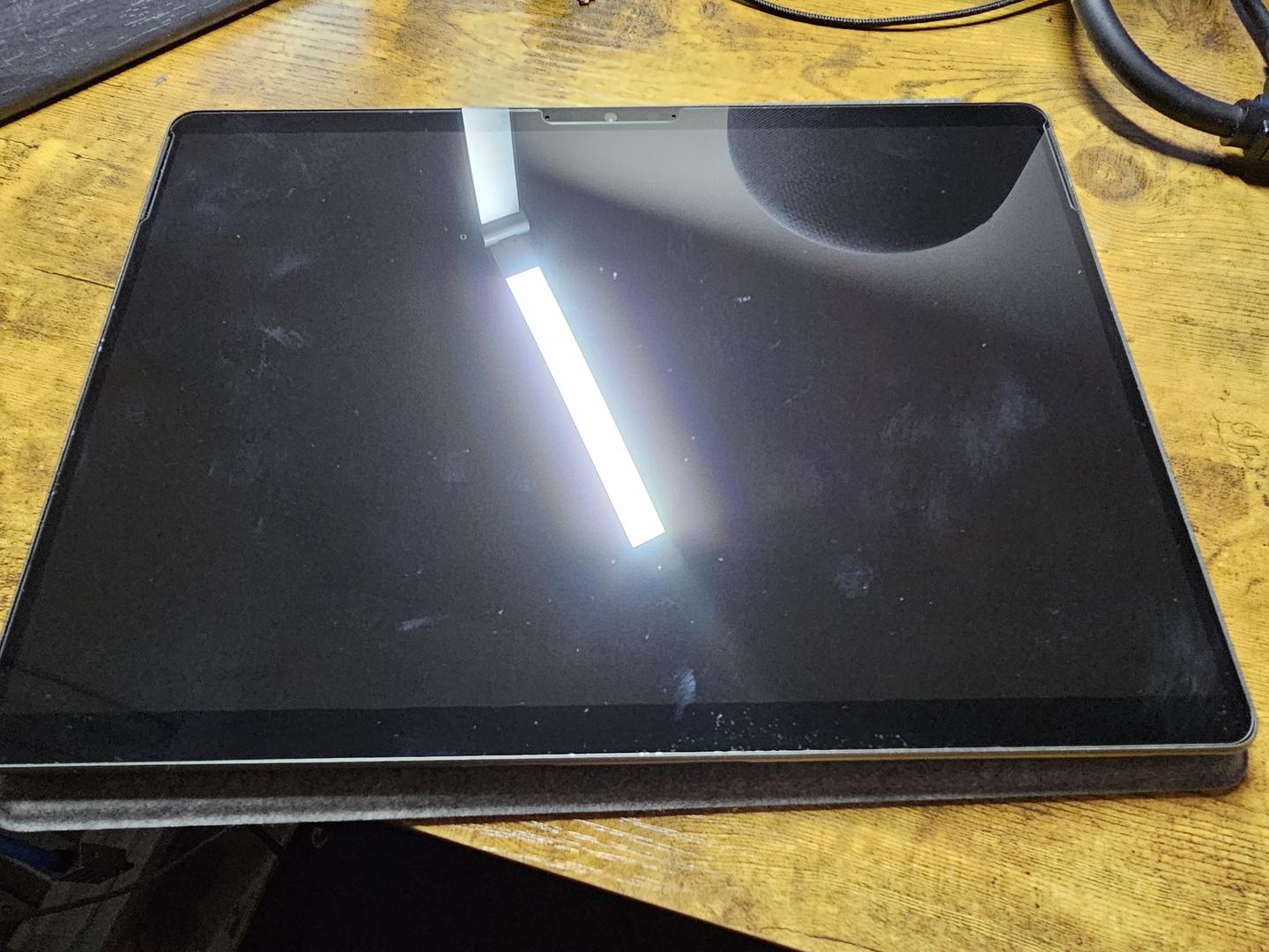 This is a used unit. I have already installed a screen proector on it. It come with the surface original keyboard (although no pen), a charger and a surface connect to usb c adpater (so that you can have two usb c ports open to you even if you want to charge your laptop by using other usb c charger).