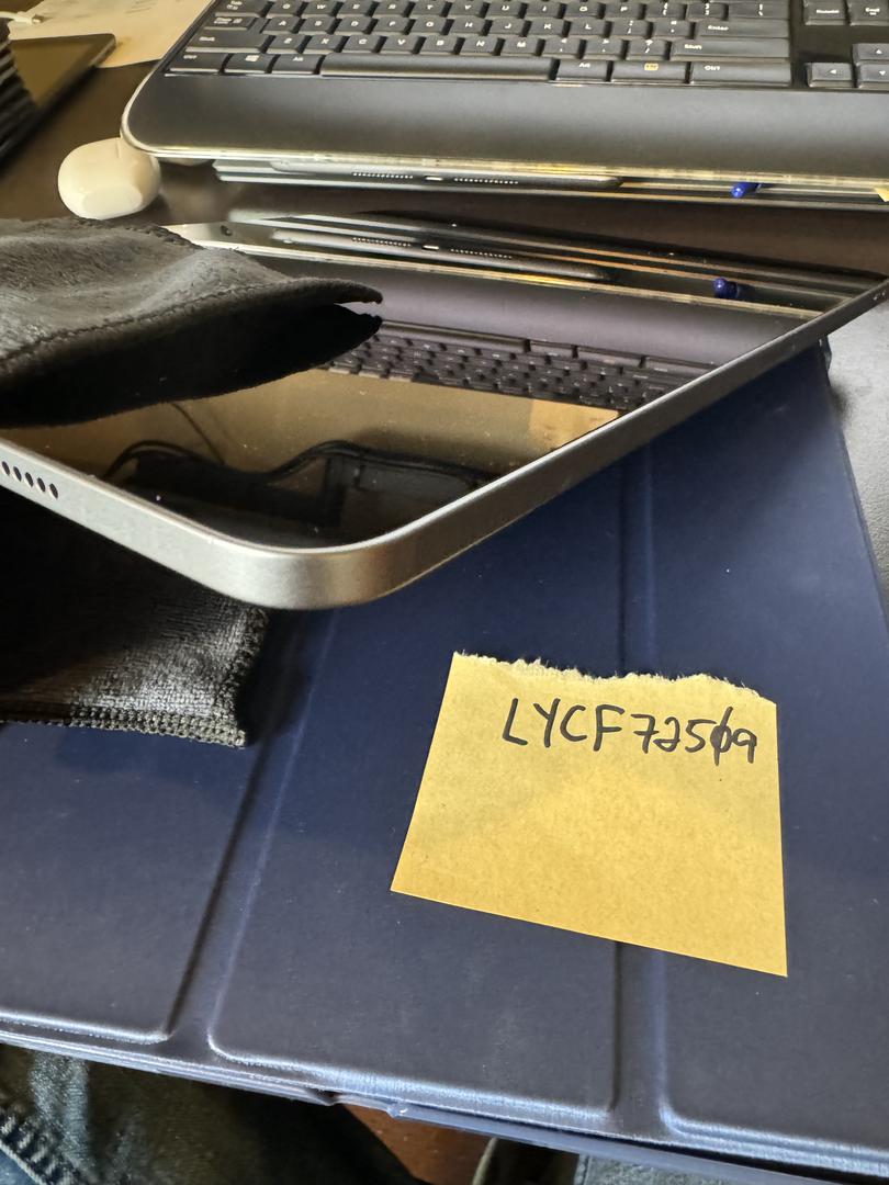 Minus a small scratch on the screen (see pic), this is a great looking/functioning iPad. Comes in generic folding case.