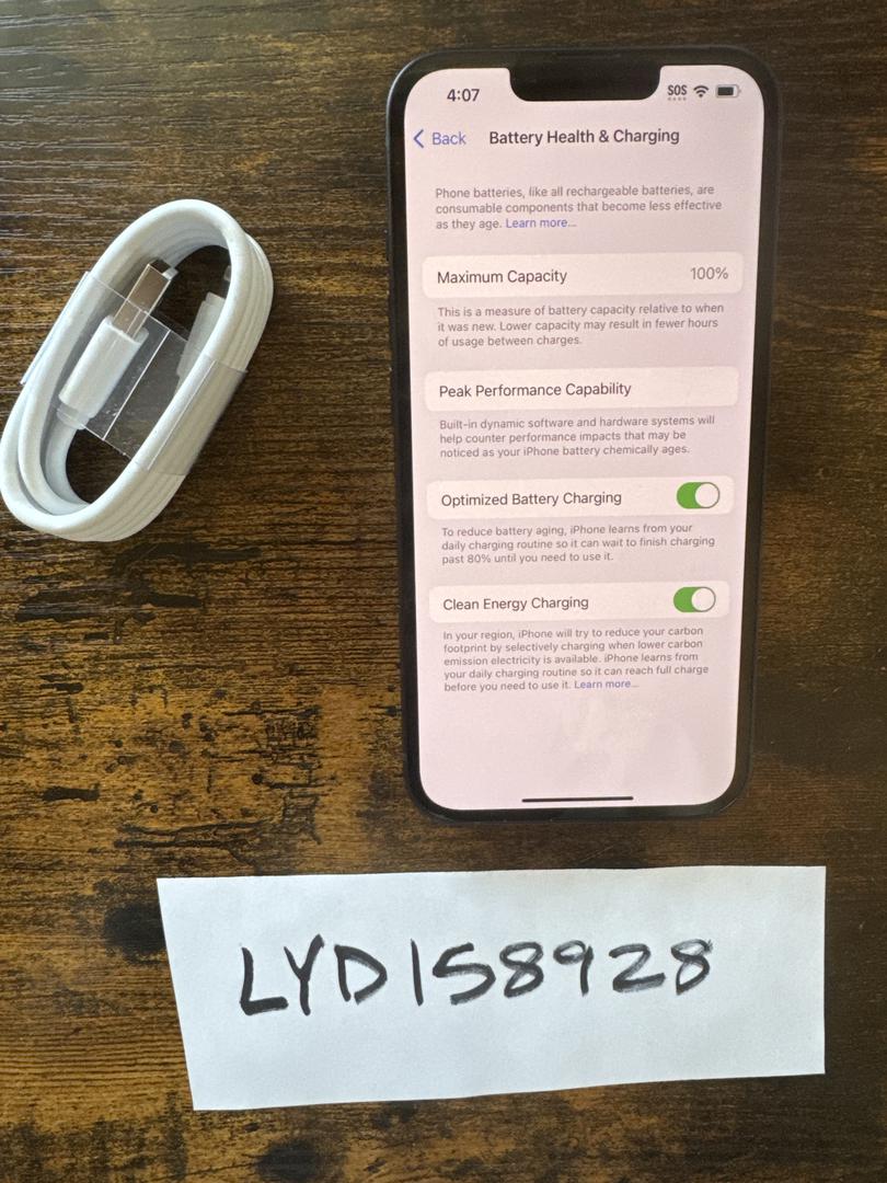 The phone looks basically brand new and works perfectly. Unlocked for any carrier worldwide and has a clean IMEI with no iCloud lock. All original parts, never repaired or refurbished. 100% battery health. No box , but it does come with a new charge cable. It is under under Apple factory warranty until 7-30-24