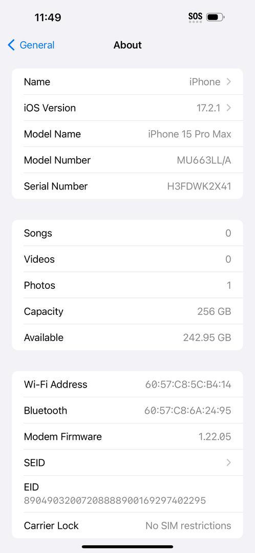 Can you post a picture of sim restrictions under settings please
