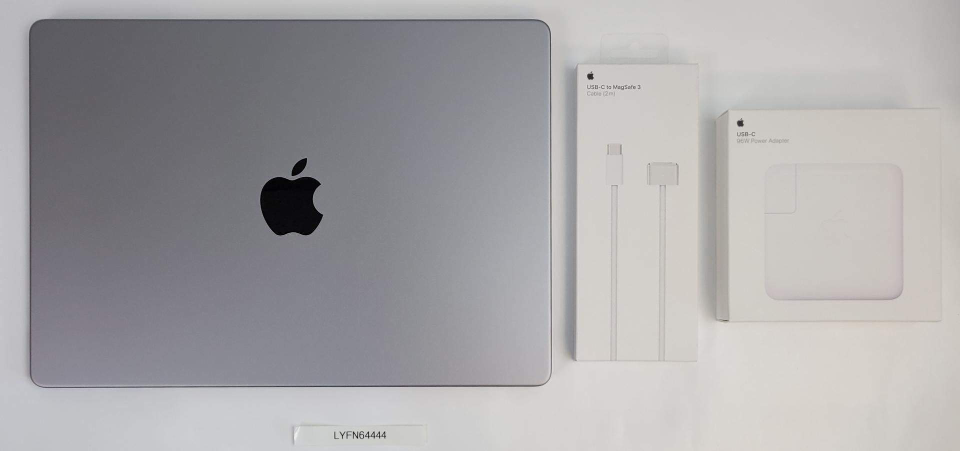 This listing includes the laptop, a New genuine Apple USB-C 96W Power Adapter, and a New Genuine Apple USB-C to Magsafe 3 Cable.