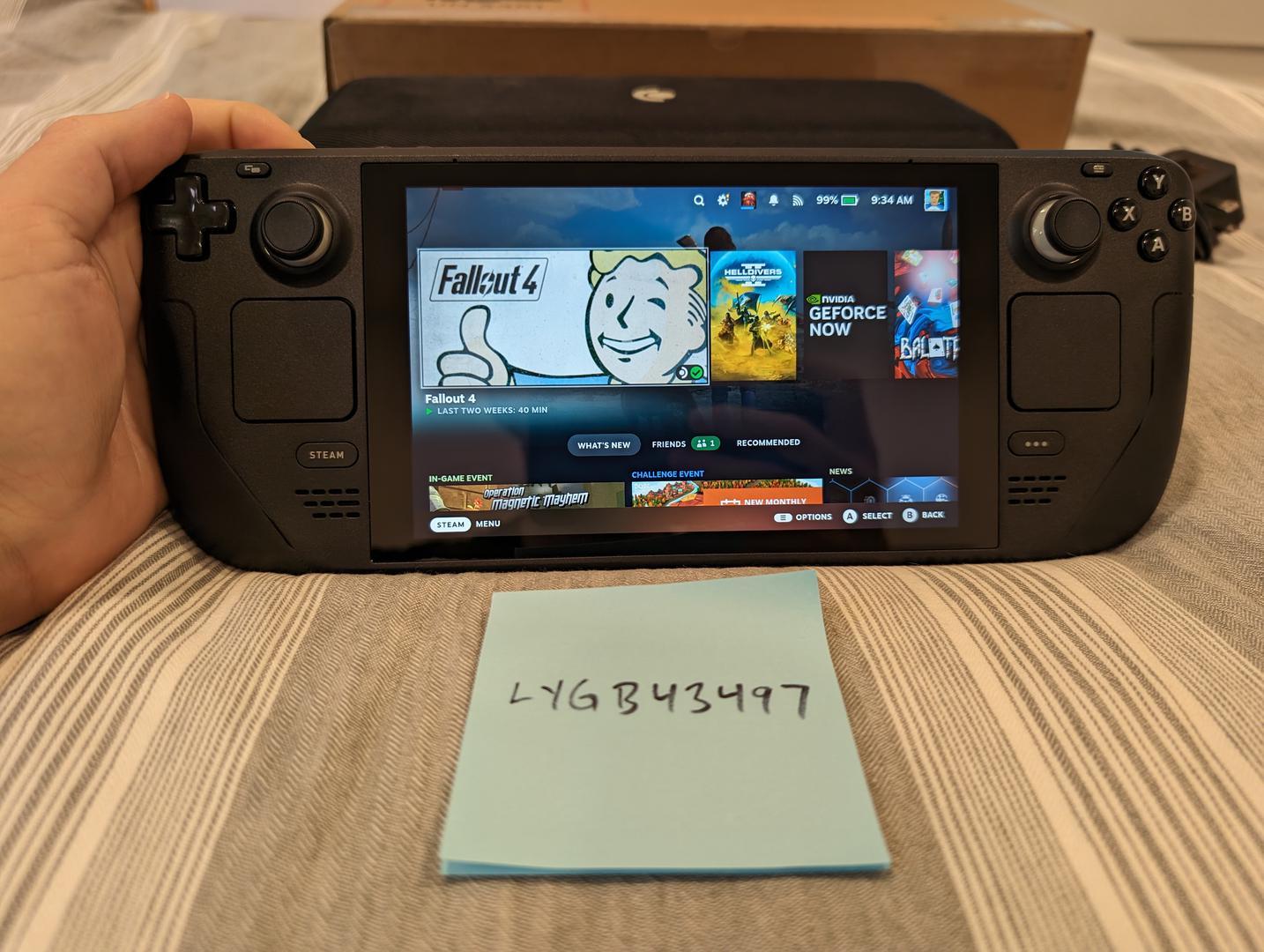 This is a very lightly used, like new Steam Deck with 64gb of internal storage and a 512gb Samsung SD card. Comes with the original box, adapter, and carrying case