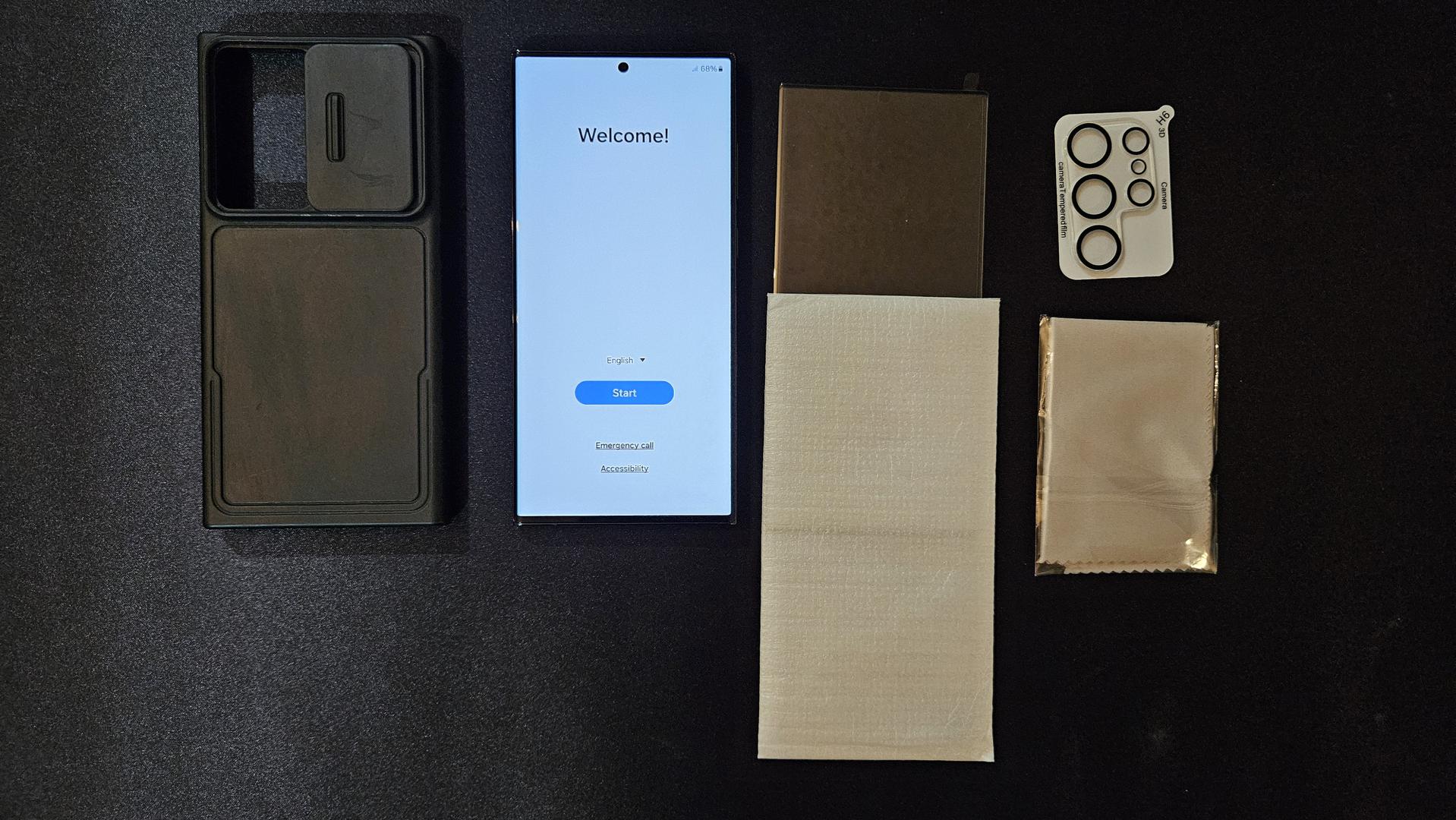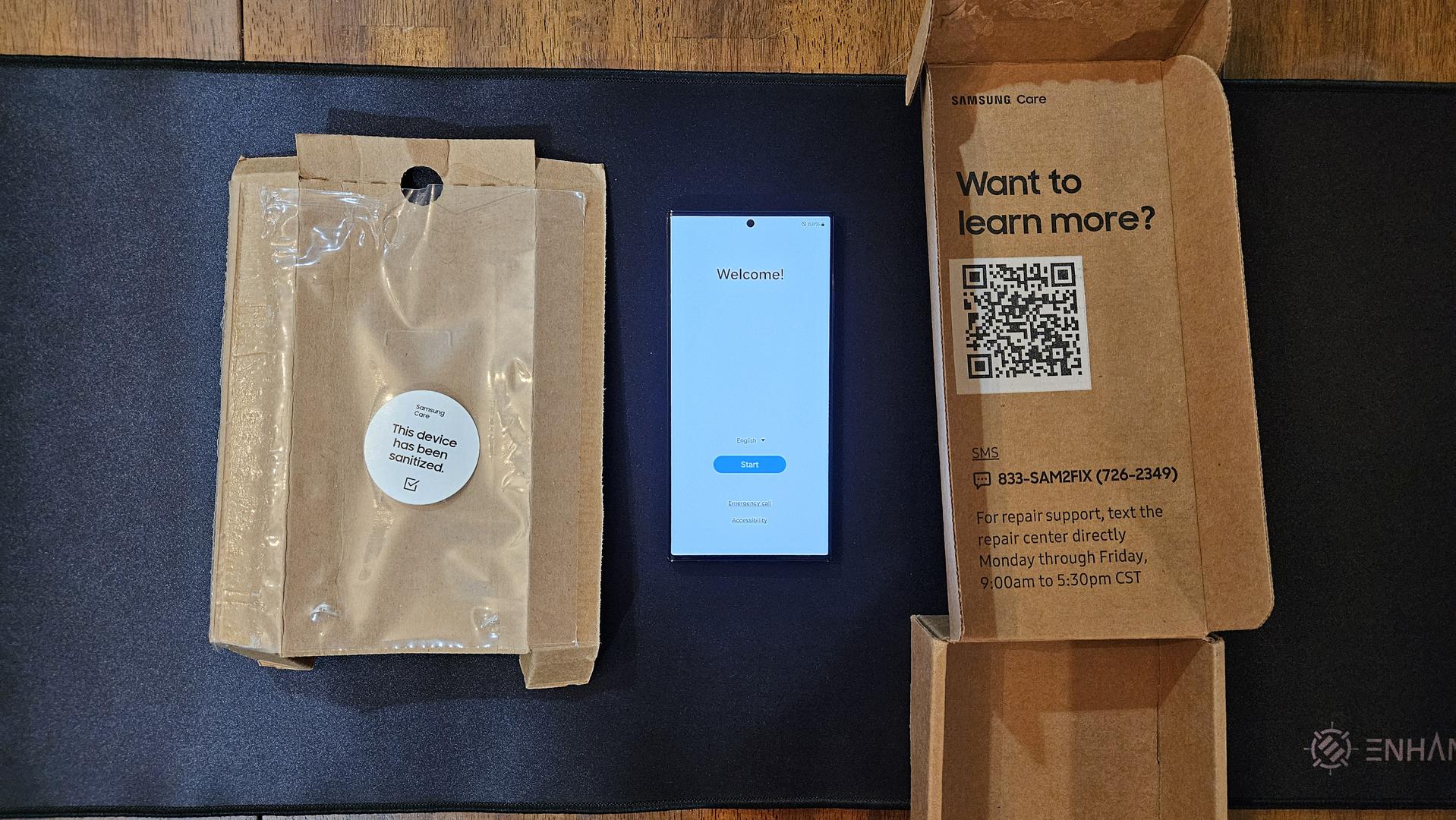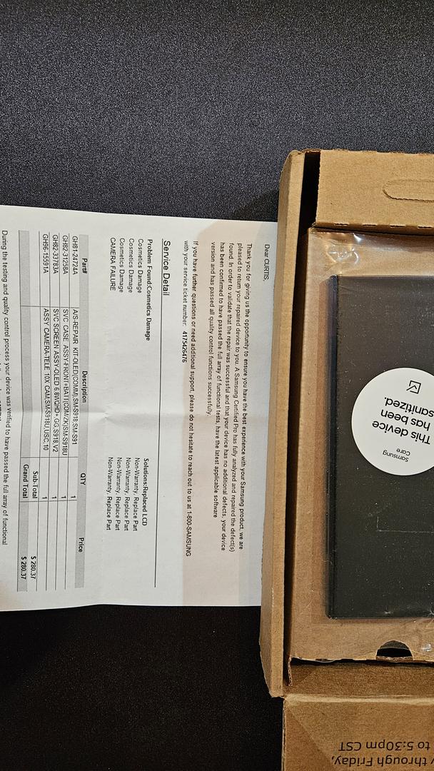 Comes with screen protector, case, and repair order from Samsung.