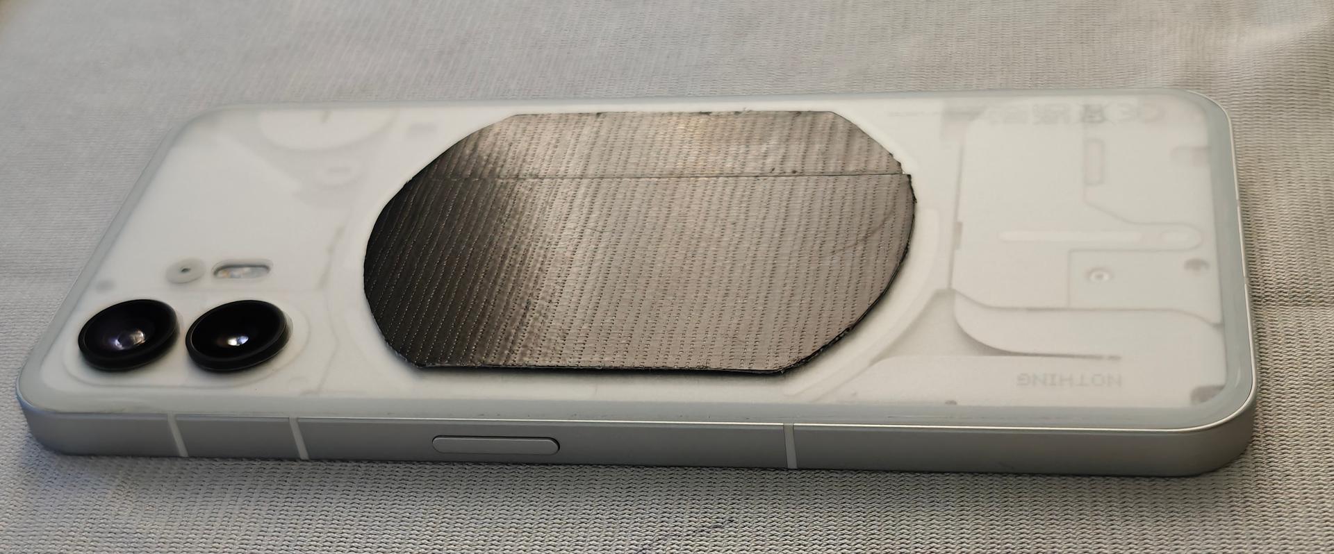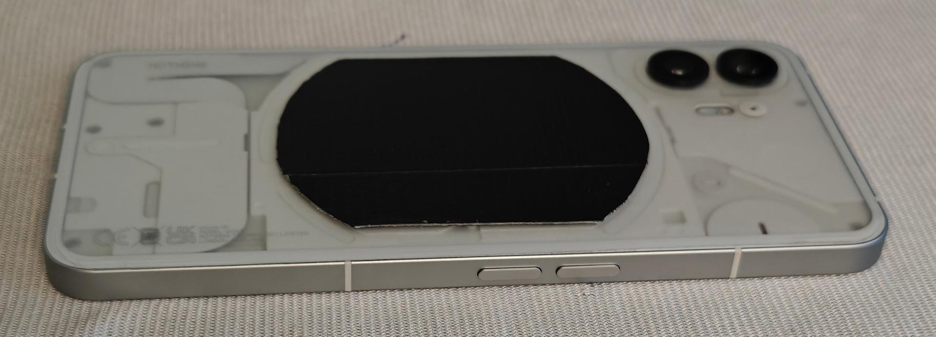 The metal black plate can be removed. With a protective skin on the back of the phone, it is not applied to the actual phones surface.