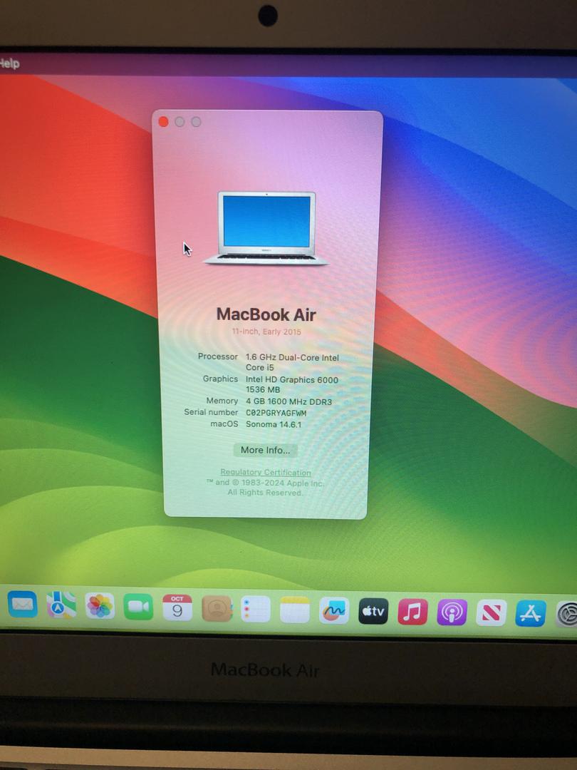 MacBook Air 11", 2015,Fully Functional, 4G RAM/128G/Grade C/MacOS Sonoma (Password to Login: admin)