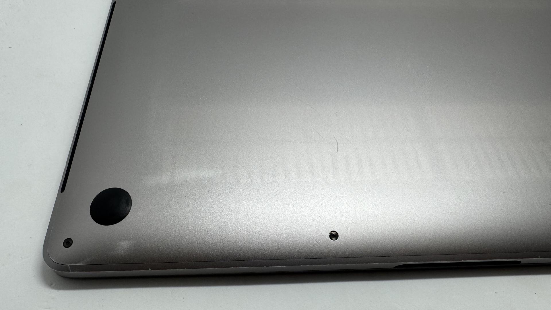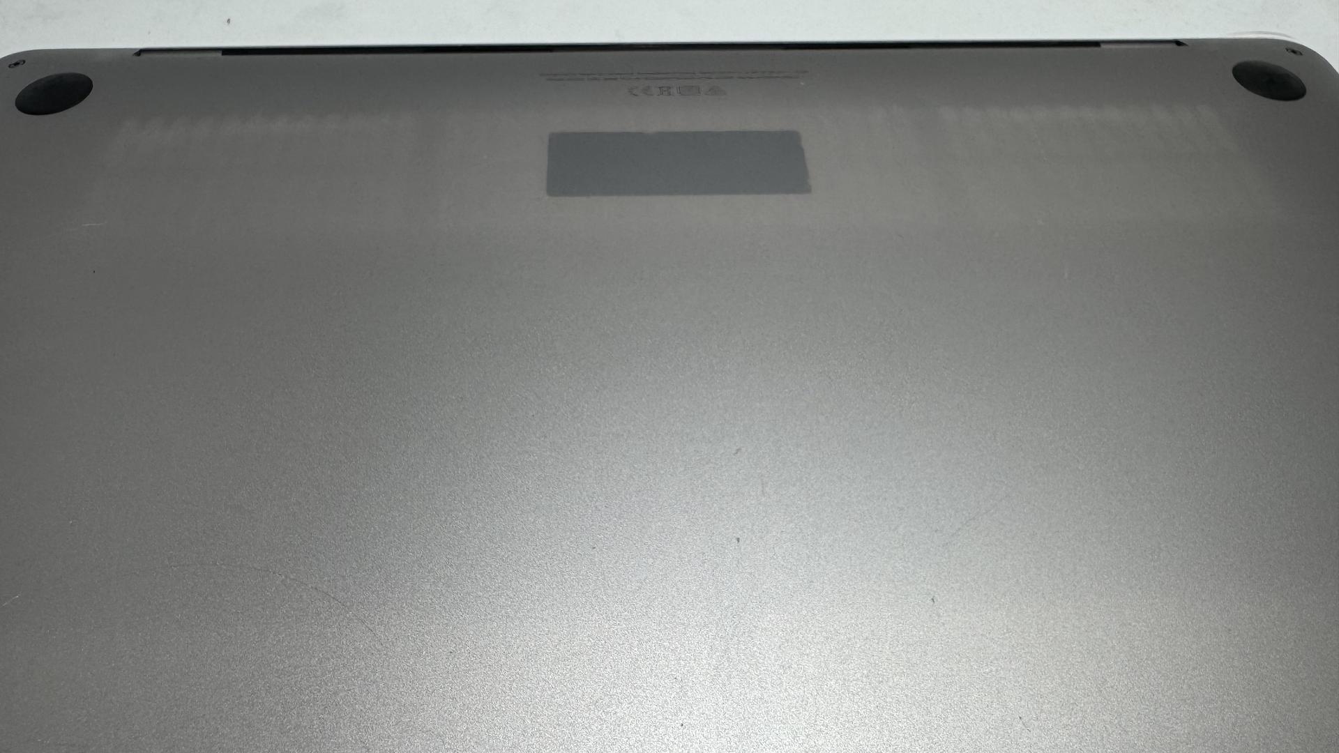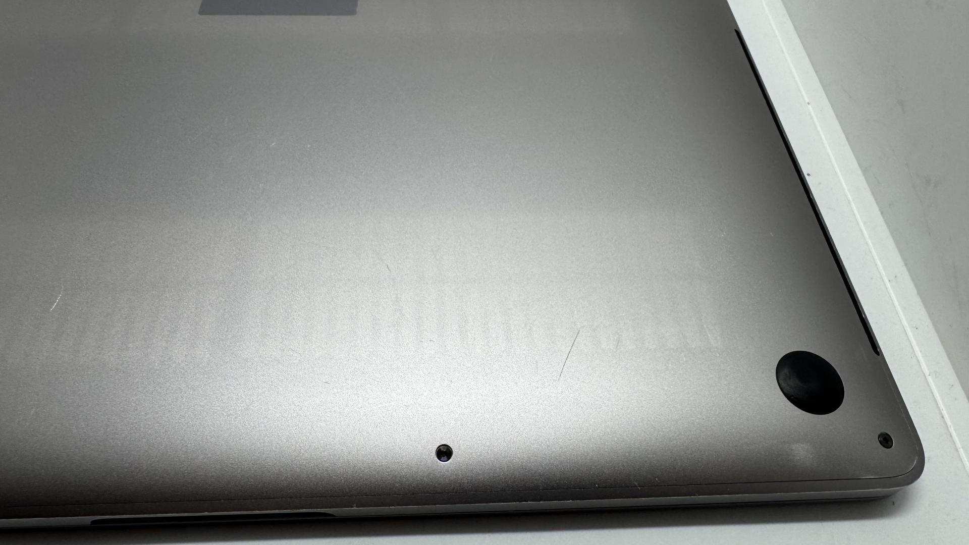 Bottom case: Very good with a few scratches and marks on it, not many overall. Discoloration from a sticker on the bottom, and some stripes from a case that was used on the MacBook