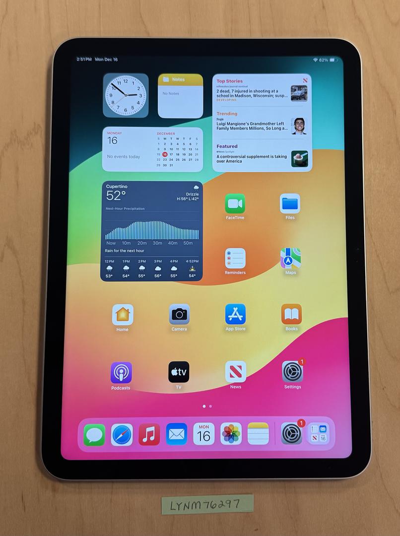 iPad 10th Gen 64GB Wi-Fi running iPadOS 17.4.1. Does not include USB-C cable or wall adapter.