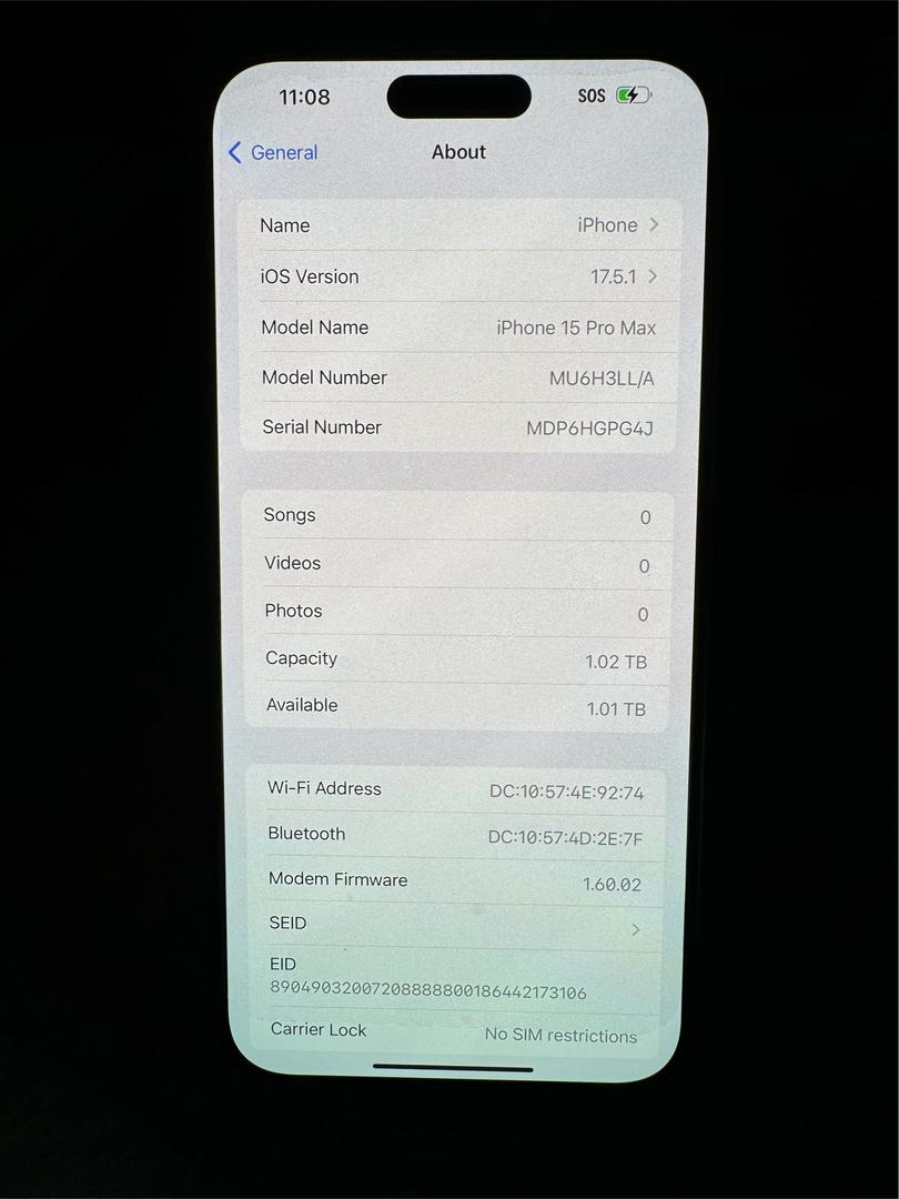 Mint (Never Used) - Apple iPhone 15 Pro Max, 1000GB (1TB), Natural Titanium - Unlocked